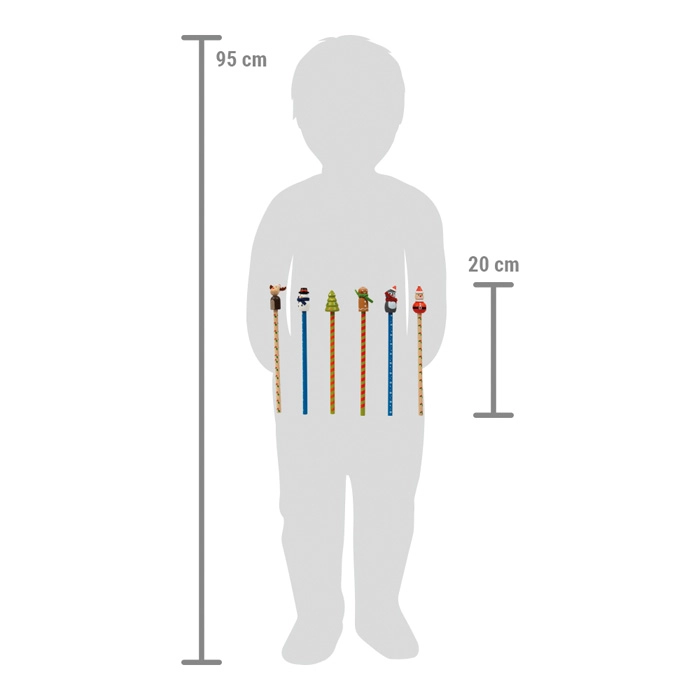 Elke potlood is voorzien van een gedetailleerd houten figuurtje – van sneeuwman tot kerstboompje. Kinderen krijgen plezier in schrijven en de schooldag wordt meteen vrolijker.