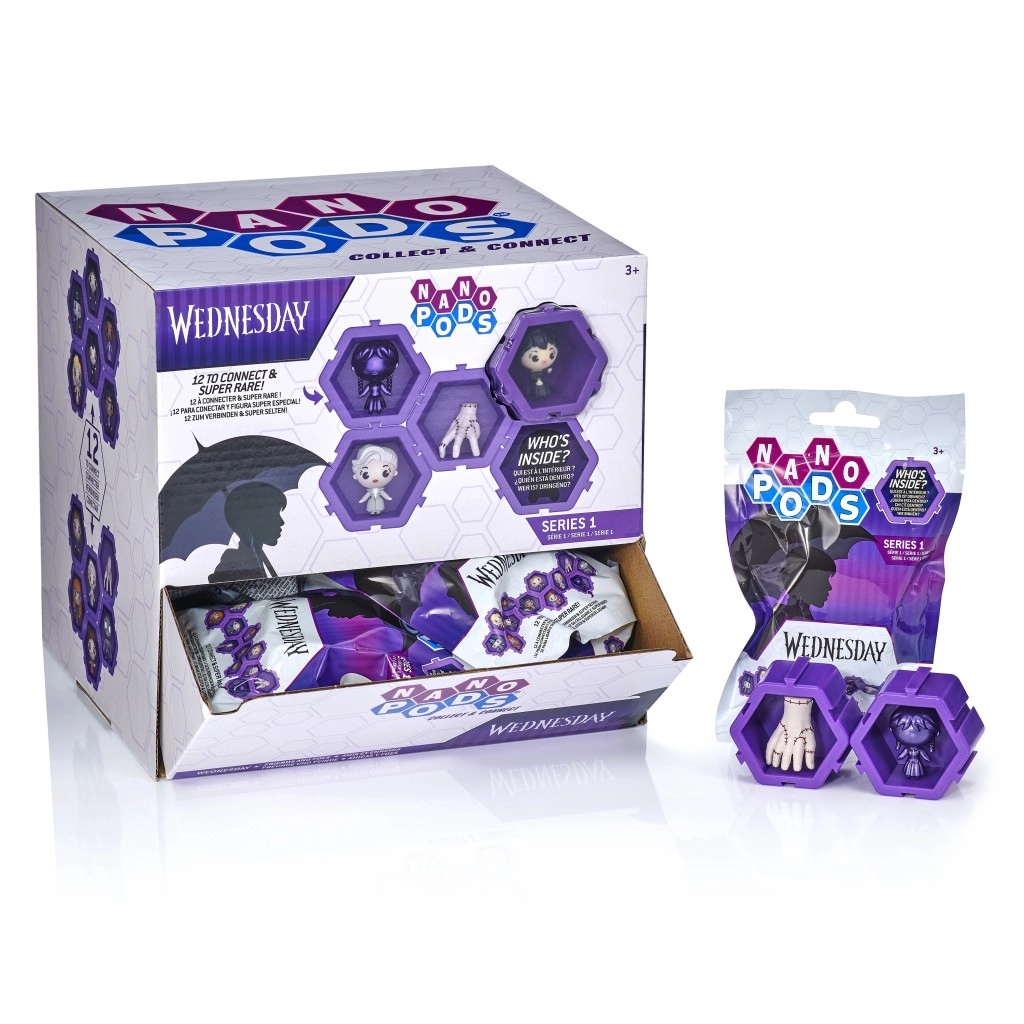 De Nano Pods-serie brengt compacte verzamelbare figuurtjes uit de wereld van WEDNESDAY, opgeborgen in koppelbare zeshoekige capsules. Elke verpakking verbergt één willekeurig personage, waardoor het uitpakken vol spanning en plezier zit. Dankzij het slimme ontwerp van de capsules maak je eenvoudig je eigen displaywand of creatieve patronen.