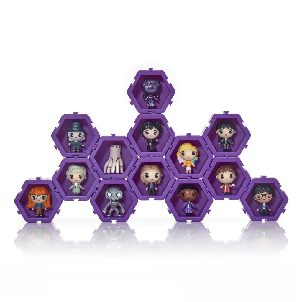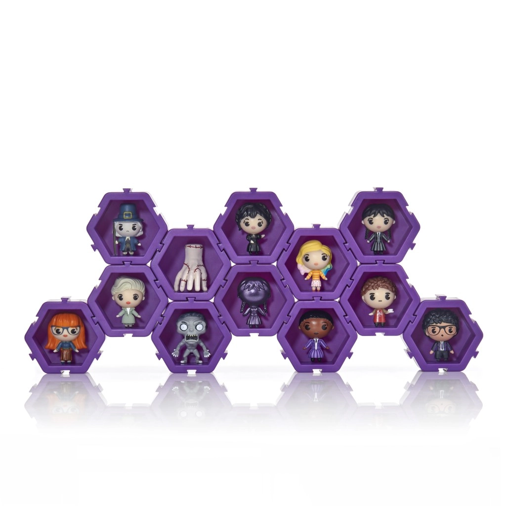 In de collectie vind je 12 verschillende personages, waaronder Wednesday, Enid, The Hyde, Bianca, Eugene, Crackstone, Tyler, Larissa en meer. De figuurtjes gloeien bovendien in het donker, wat zowel spelen als verzamelen een indrukwekkend effect geeft.