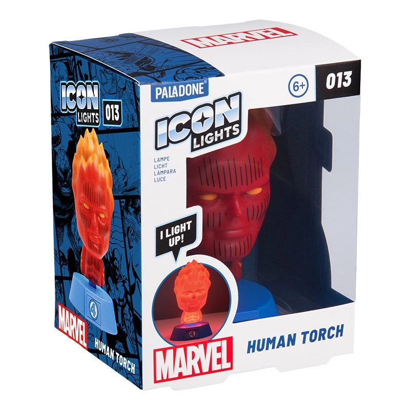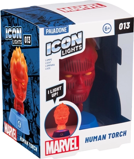 Geef je kamer een heldhaftige sfeer met de decoratieve Human Torch-lamp van de FANTASTISCHE VIER. Dankzij het compacte formaat en de prettige lichtspreiding past hij in kinder- en studentenkamers, slaapkamers of studeerkamers. De lamp is perfect voor avondlezen, subtiele verlichting van een plank of als verzamelobject voor fans van de MARVEL-wereld.