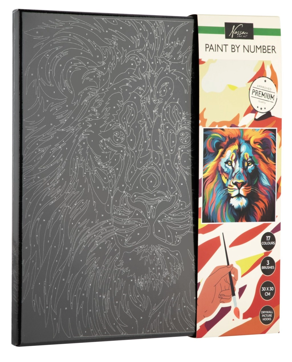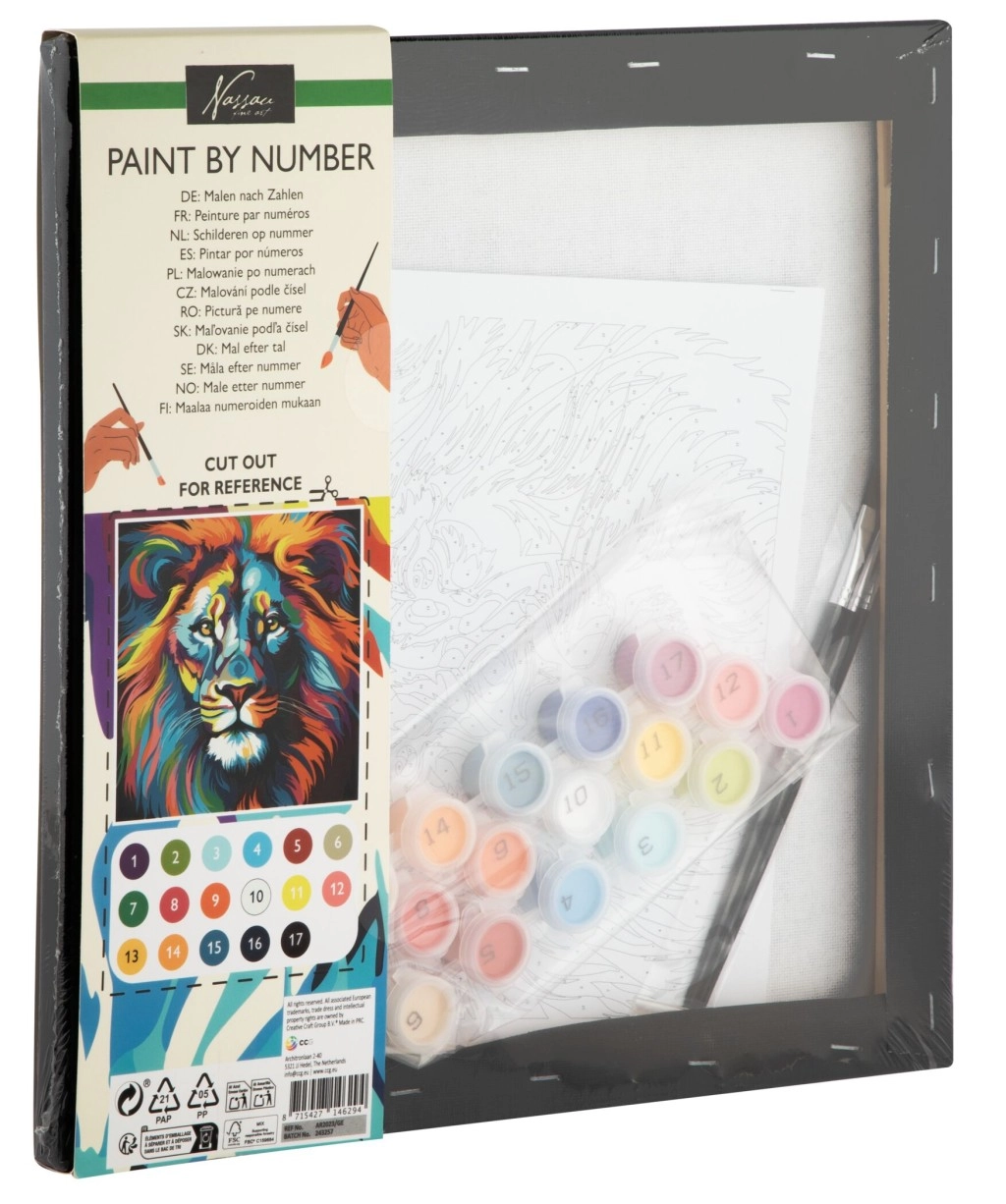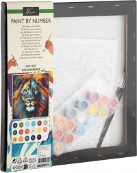 Ontdek een ontspannende, creatieve ervaring met een leeuwenmotief op zwart canvas. De set voor schilderen op nummer maakt het eenvoudig om zelfs voor beginners een indrukwekkend schilderij te maken. Aan de hand van duidelijk gemarkeerde nummers kleur je de vlakken in met de overeenkomstige kleuren en bereik je een professioneel resultaat. Perfect voor het ontwikkelen van geduld, precisie en oog voor detail en voor aangename ontspanning.
