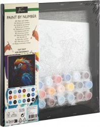 Ontdek de magie van schilderen op nummer en verander het voorgedrukte papegaaimotief op een zwarte achtergrond in een expressief schilderij met briljante kleuren. De genummerde delen komen overeen met de verfkleuren in de set, waardoor het schilderen intuïtief is, ook voor beginners. Het zwarte doek geeft het motief diepte en een moderne uitstraling.