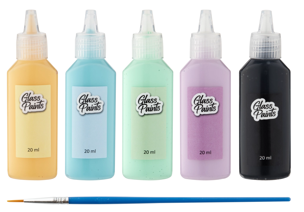- 5× glasverf (20 ml) en 1× penseel