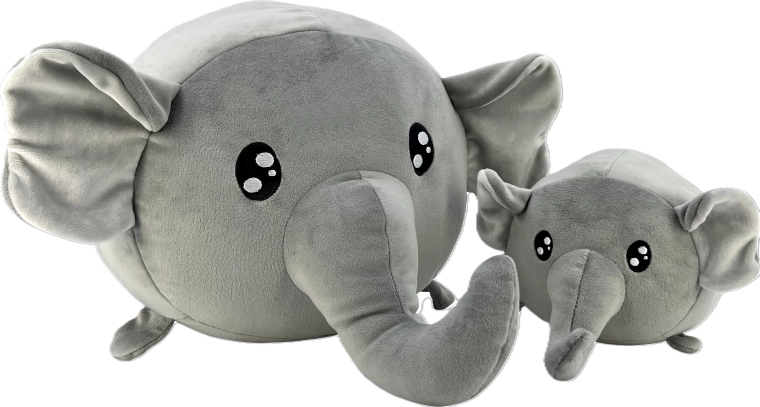 Deze set pluchen olifanten in een universele grijze kleur is ontworpen voor dagelijks knuffelen, spelen en ontspannen. Het hoogwaardige, zachte pluche is mild voor de kinderhuid en de veilige geborduurde ogen garanderen onbezorgd spelen zonder kleine onderdelen. De kleinere olifant (20 cm) is een fijne slaapmaatje, terwijl de grotere (40 cm) verandert in een comfortabel kussentje voor in de auto of een stijlvolle decoratie voor de kinderkamer.