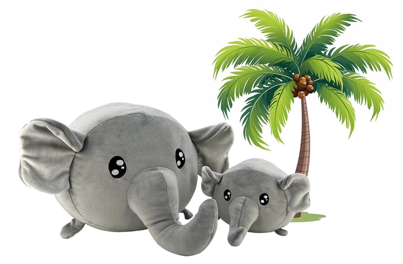 Schattige set van twee pluchen olifanten – moeder en jong – biedt zachte knuffels, veilige geborduurde details en comfort voor kinderen van alle leeftijden. De kleinere olifant is ideaal als knuffeltje voor baby’s, de grotere dient als comfortabel kussentje voor onderweg en in de kinderkamer. Eenvoudig te onderhouden door wassen op 30 °C.