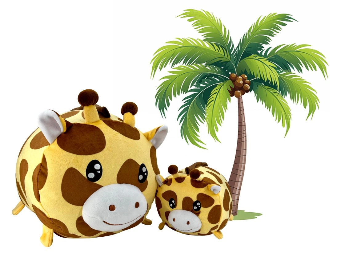 De set van twee geborduurde pluchen giraffen brengt zachte knuffels en een schattige decoratie in de kinderkamer. De ronde vorm, zachte pluche en veilige gestikte details zorgen voor comfortabel knuffelen, zelfs voor de kleinste baby’s, terwijl oudere kinderen de grotere giraffe waarderen als kussentje voor in de auto of op reis.