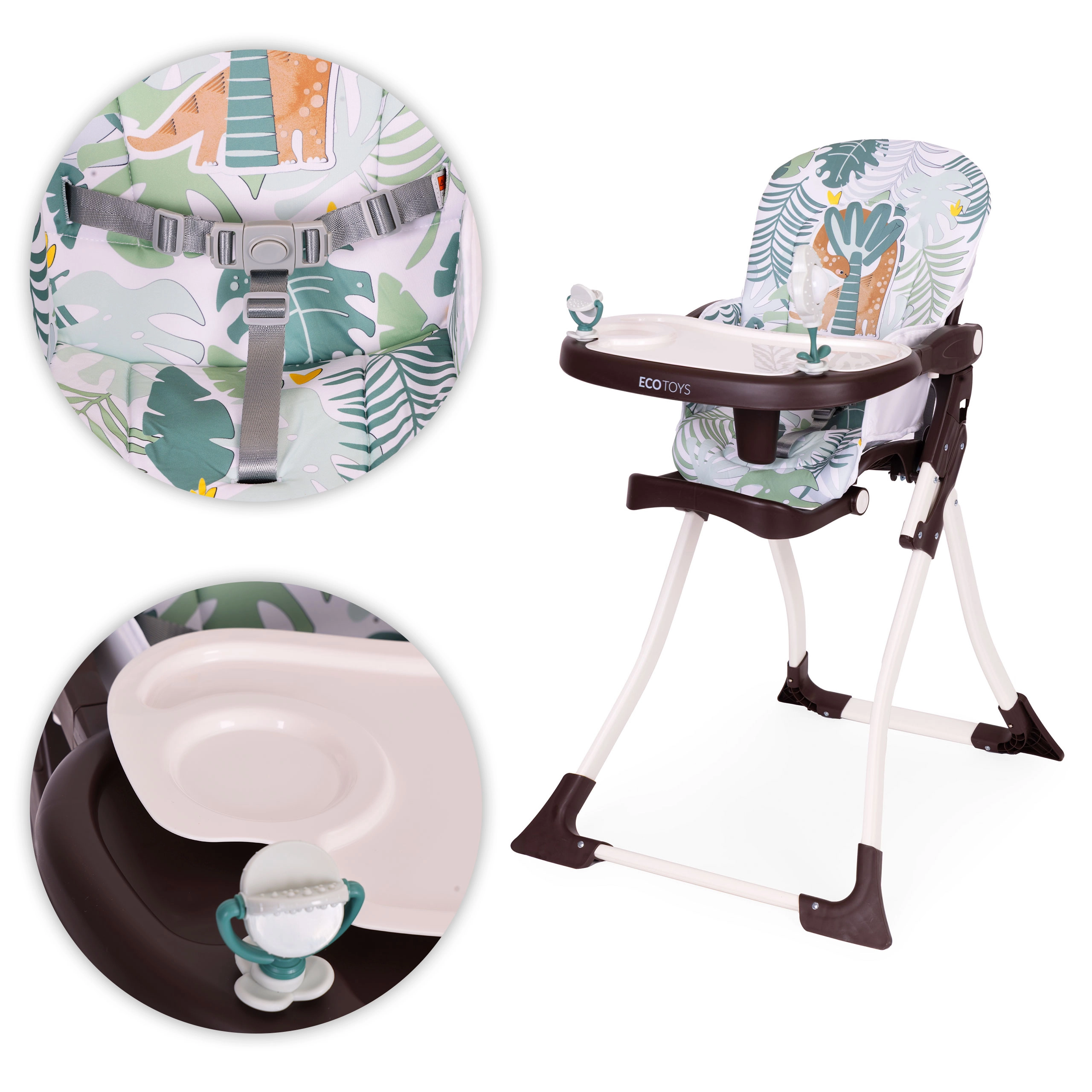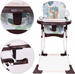 De ECOTOYS kinder-eetstoel vergemakkelijkt samen tafelen en houdt je kind comfortabel en veilig. Het brede blad biedt voldoende ruimte voor bordje, beker en spelen – inbegrepen zijn een draaibaar speeltje en een rammelaar die vermaken en de zintuigen stimuleren. De opvouwbare constructie bespaart ruimte in kleine interieurs en vergemakkelijkt transport.