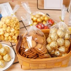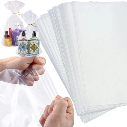 Transparante cadeauzakken van OPP-folie blinken uit door uitzonderlijke helderheid en een schoon uiterlijk, waardoor verpakte items prachtig worden benadrukt. Ze zijn gecertificeerd voor contact met levensmiddelen, dus geschikt voor snoep, koekjes of huisgemaakte lekkernijen, maar ook voor sieraden, accessoires, textiel en kleine elektronica.