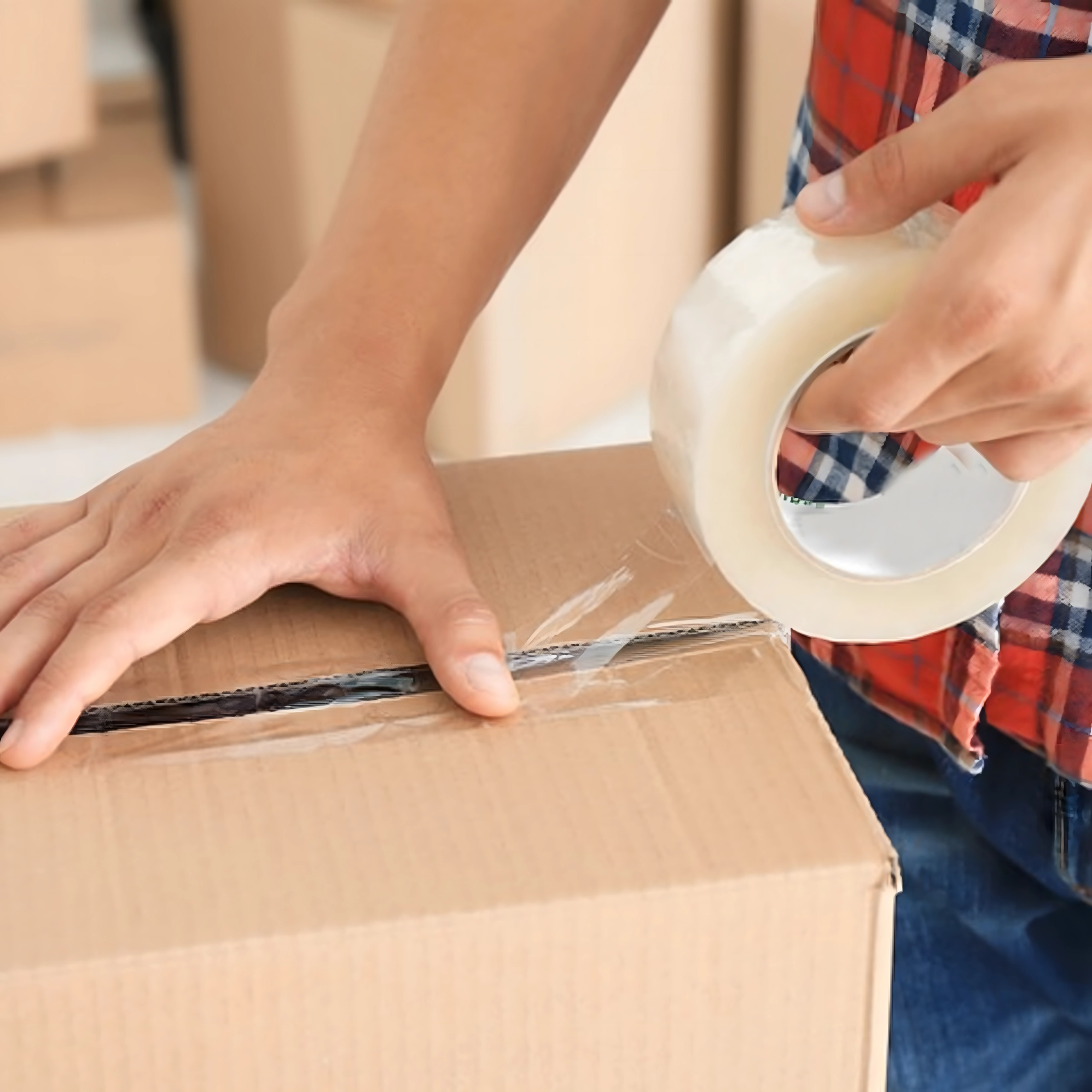 Heldere tape met hoge kleefkracht sluit kartonnen dozen betrouwbaar af en beschermt de inhoud tijdens transport en opslag.