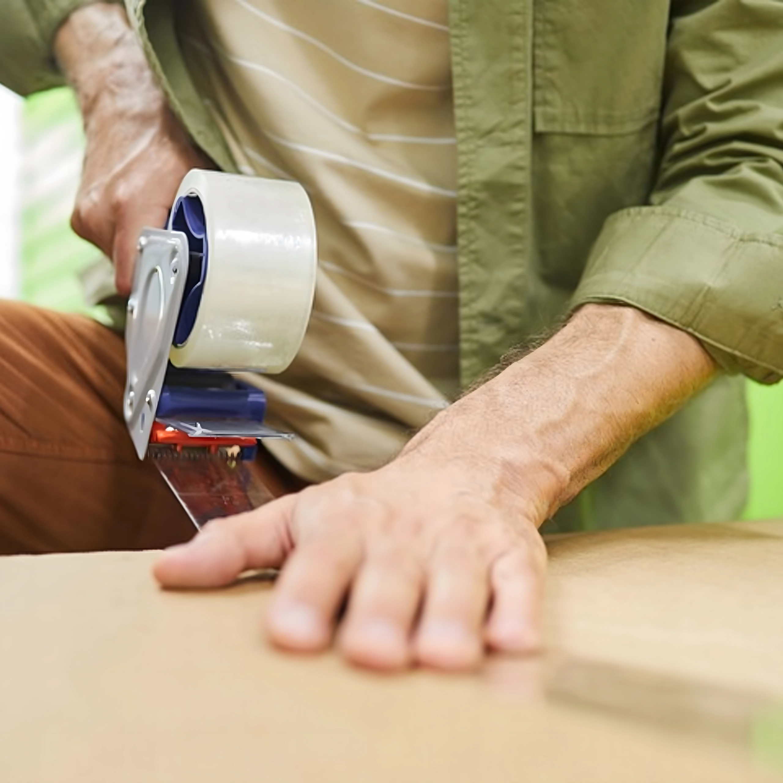 Compatibel met tape‑dispensers voor snel, soepel en veilig verzegelen van pakketten met één hand.