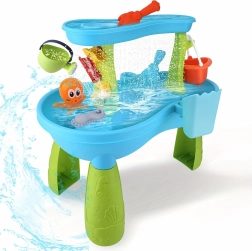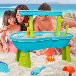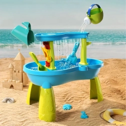 Ontdek de veelzijdige 2-in-1 water- en zandtafel die elke middag in de tuin verandert in een avontuur. Kinderen kunnen water gieten, kijken hoe de wielen draaien, zandsculpturen maken en verschillende texturen ontdekken. De stabiele kunststof constructie en afgeronde randen zorgen voor veilig spelen voor de kleintjes.