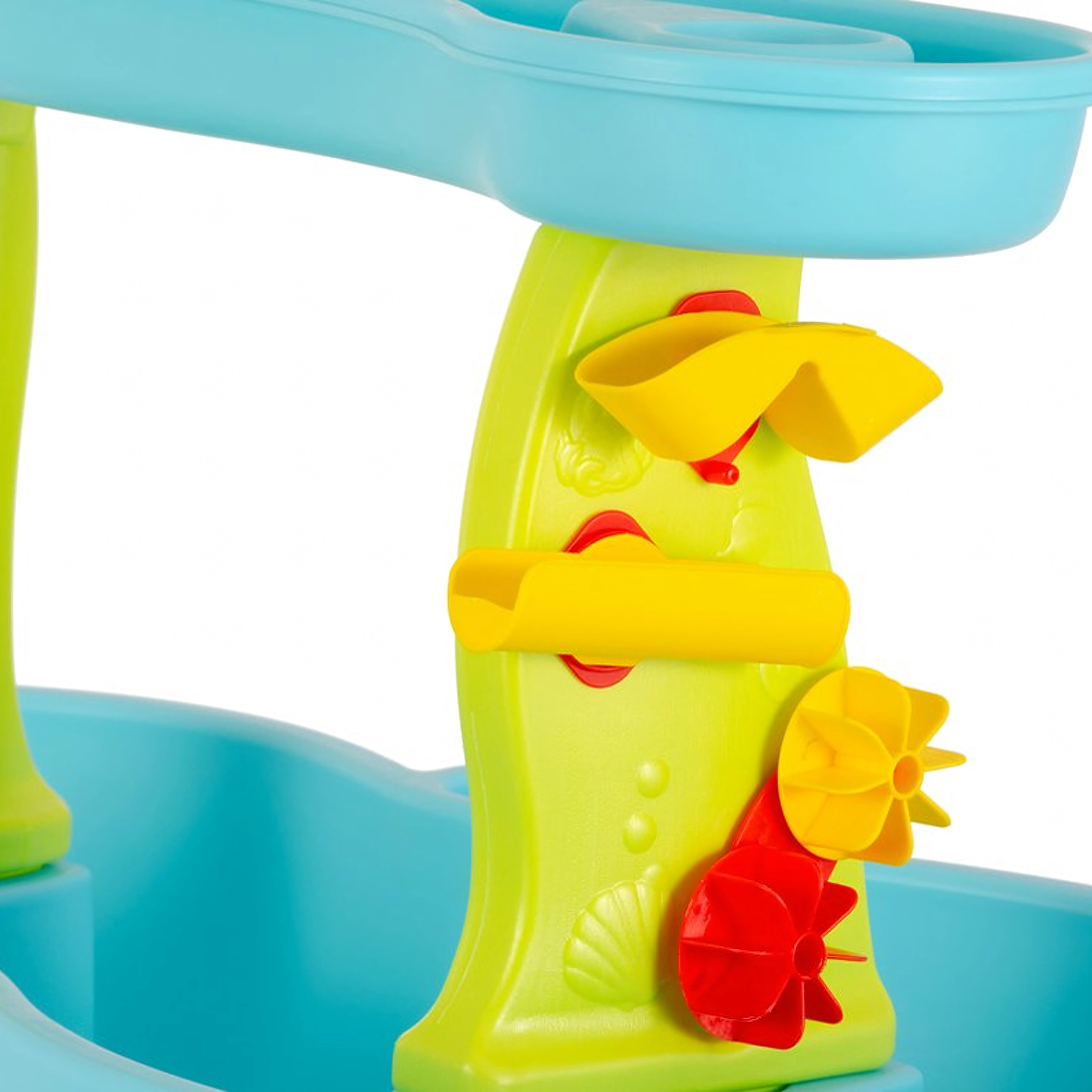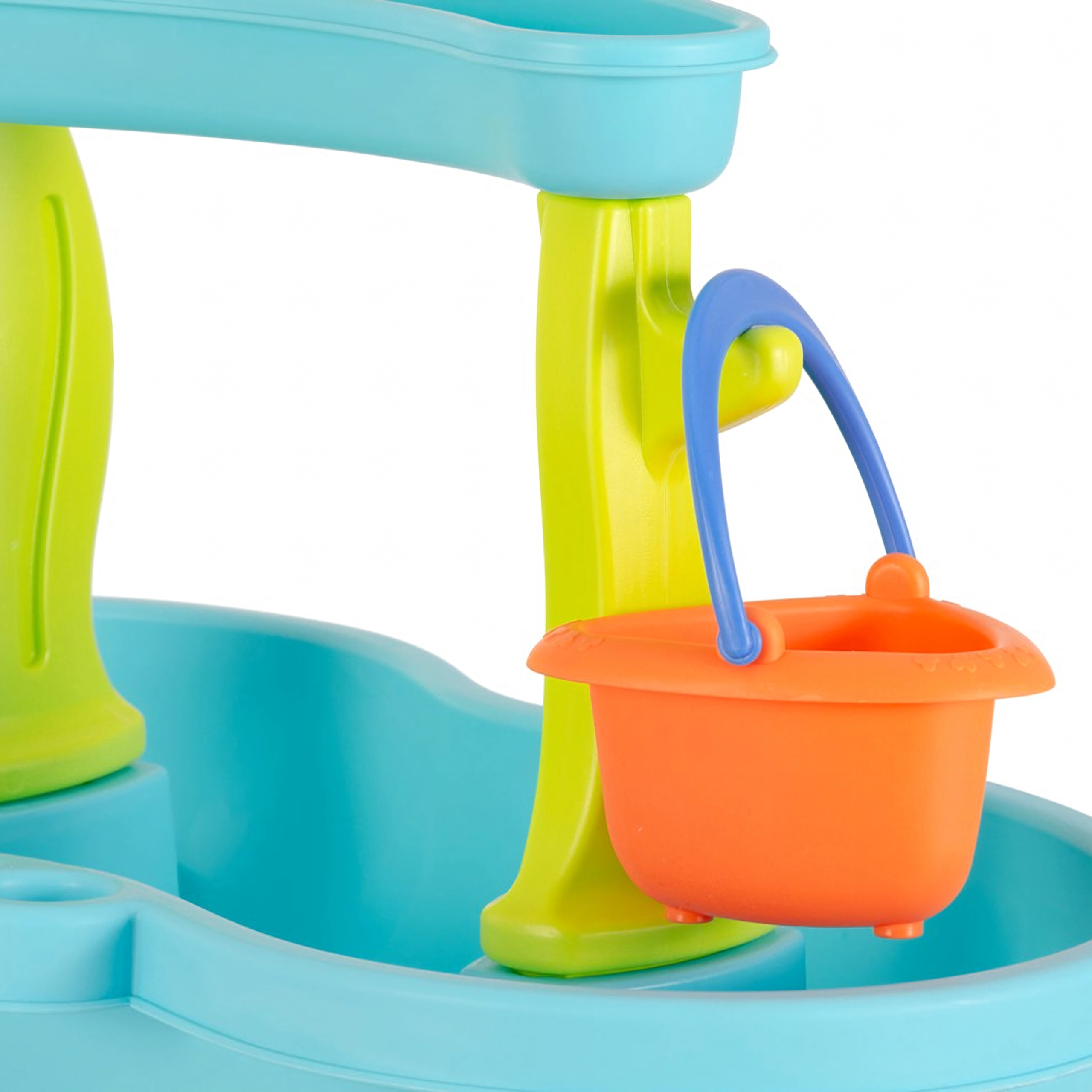Giet water in het bovenste bakje en kijk hoe de waterradjes gaan draaien en kleine watervallen ontstaan. Geweldige visuele en zintuiglijke stimulatie voor kinderen.