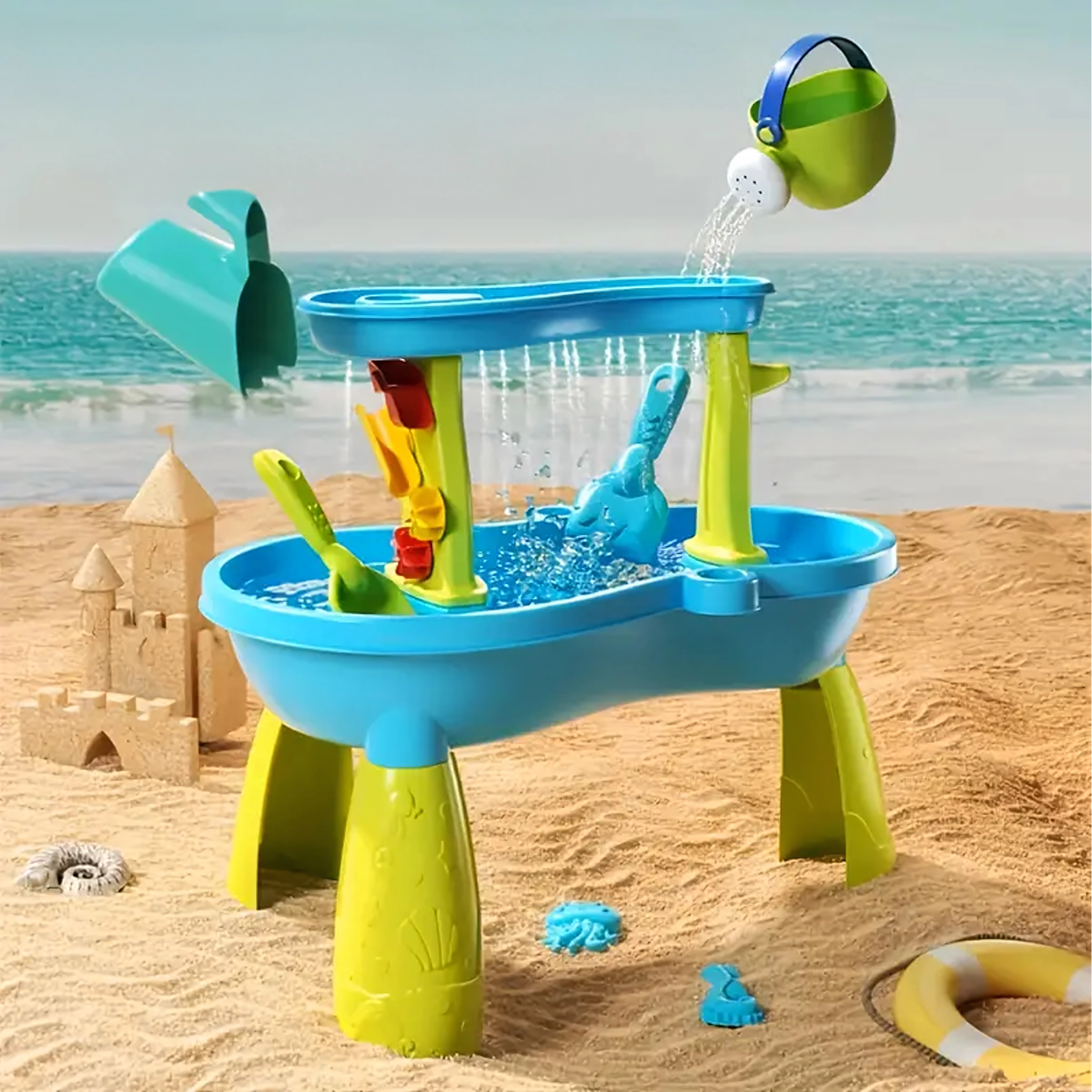 - 2-in-1: water en zand – flexibel te gebruiken naar seizoen en omgeving.