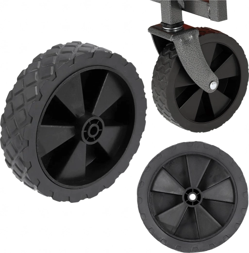 Betrouwbaar reservewiel met een robuust loopvlak voor zekere grip en soepel bewegen op diverse ondergronden — van bestrating tot tuinpaden. Dankzij de lichte maar stevige constructie met spaaknaaf is het wiel eenvoudig op de as te plaatsen en biedt het stabiliteit bij het vervoeren van lading.