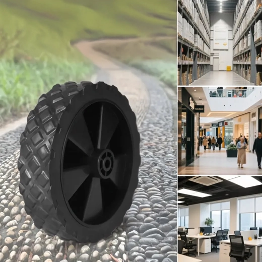 PVC is bestand tegen vocht en wisselvallig weer, waardoor het wiel geschikt is voor gebruik het hele jaar door bij opvouwbare karren, bolderkarren, tuin- en transportkarren. Een snelle en voordelige oplossing die de levensduur van je uitrusting verlengt.