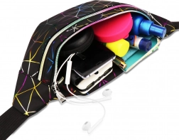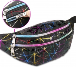 Deze praktische heuptas is een uitstekende keuze voor dagelijks gebruik, reizen en vrije tijd. Het holografische geometrische patroon geeft een originele look, terwijl de doordachte indeling met drie ritscompartimenten alles veilig op zijn plek houdt. De voorvakken passen ook een grote smartphone, het achtervak is ideaal voor waardevolle spullen.