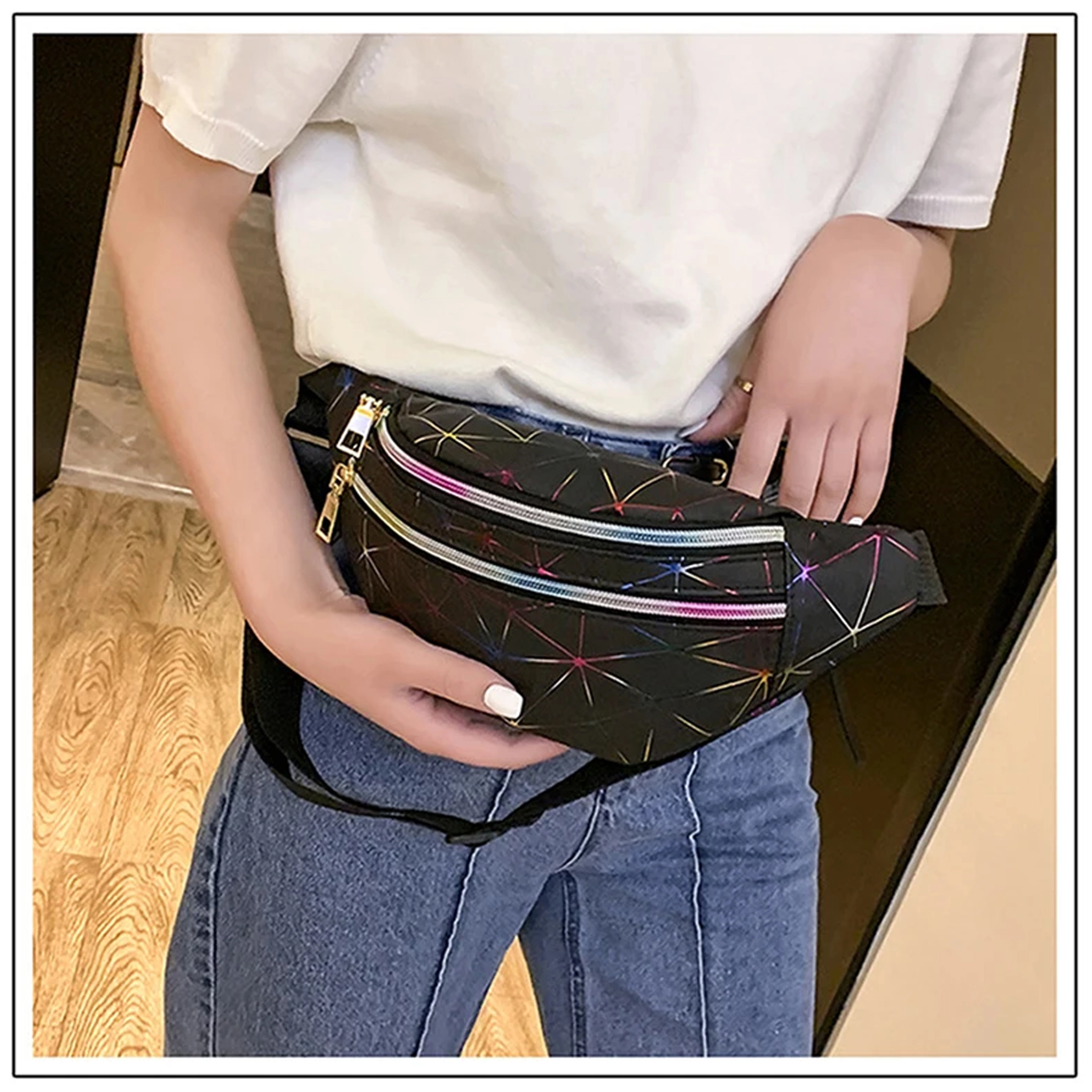 Unisex heuptas met holografisch geometrisch patroon, 3 vakken, verstelbare riem