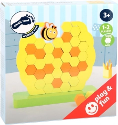 De motorische balansspeelset bijenkorf Small Foot maakt van elke dag een vrolijke uitdaging. Het bijtje zit boven op de rand van de korf en de spelers trekken om de beurt houten cellen weg om het evenwicht te bewaren. Wie het bijtje het langst in de korf weet te houden, wint!