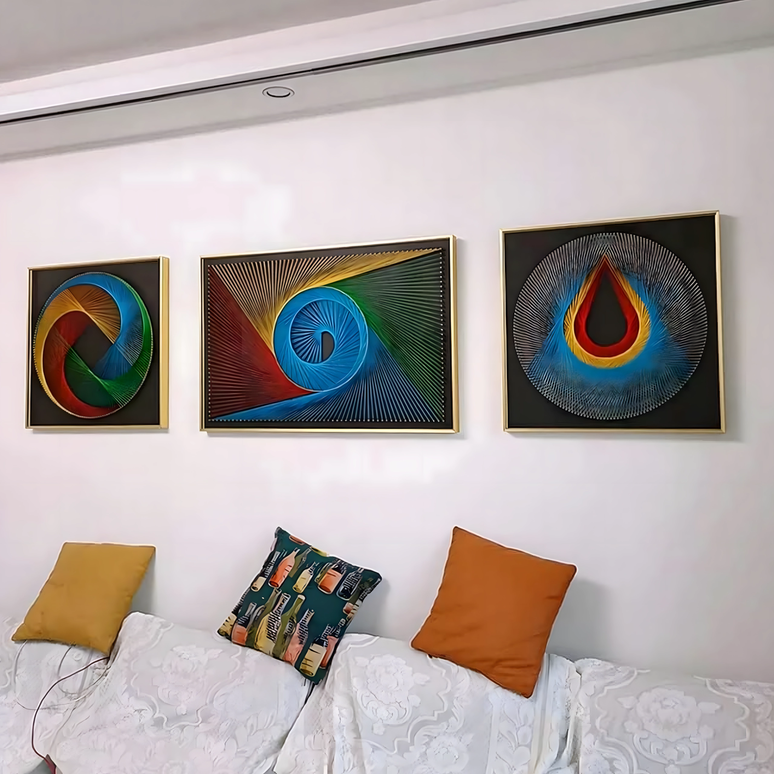 Canvas op houten frame (spieraam), acrylverf, penselen, ophangelementen