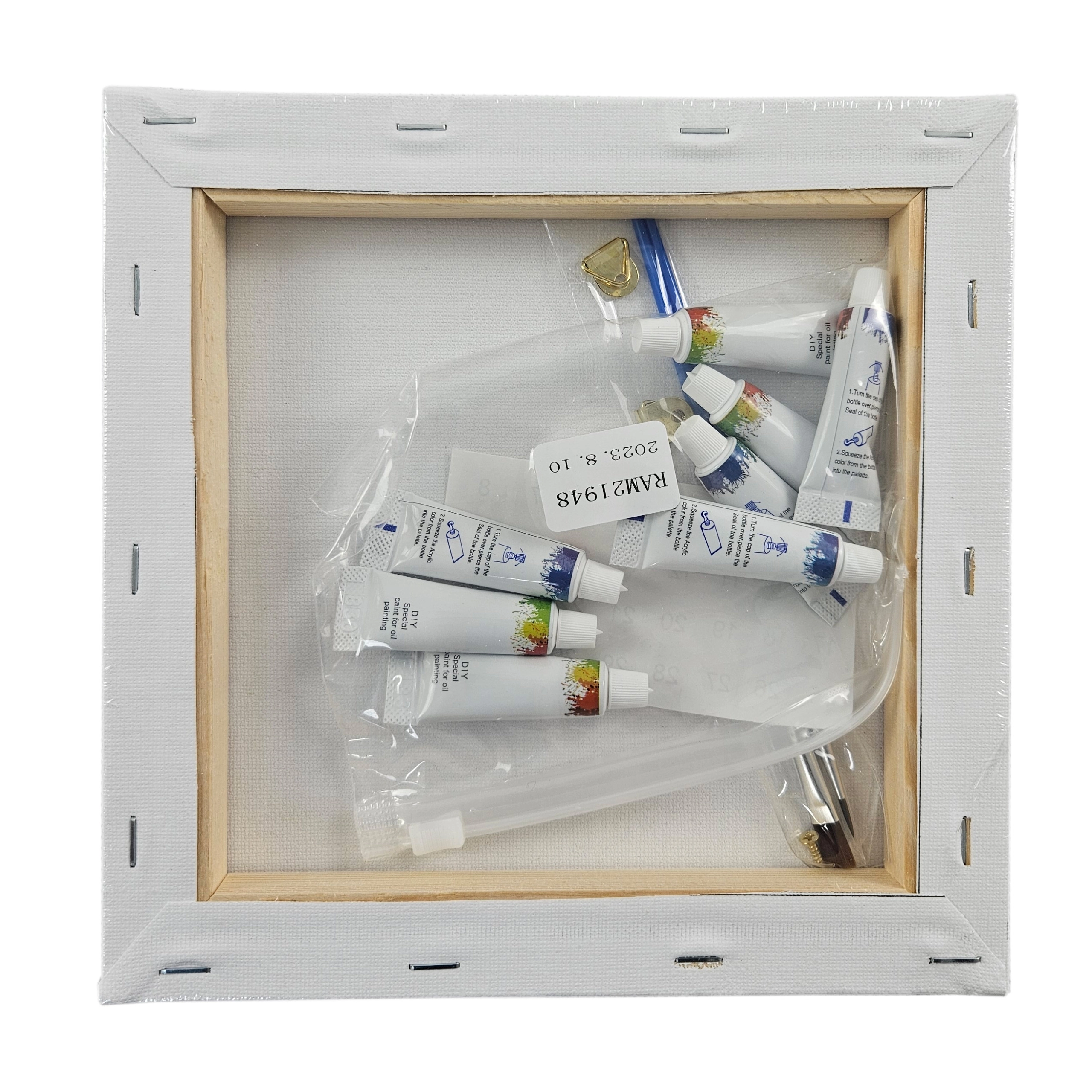 In de verpakking vind je een canvas op frame, penselen en een set acrylverf – na het uitpakken kun je meteen beginnen en het schilderij na afloop ophangen.