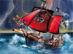 • Decoratief motief: dramatisch piratenschip op een woelige zee.