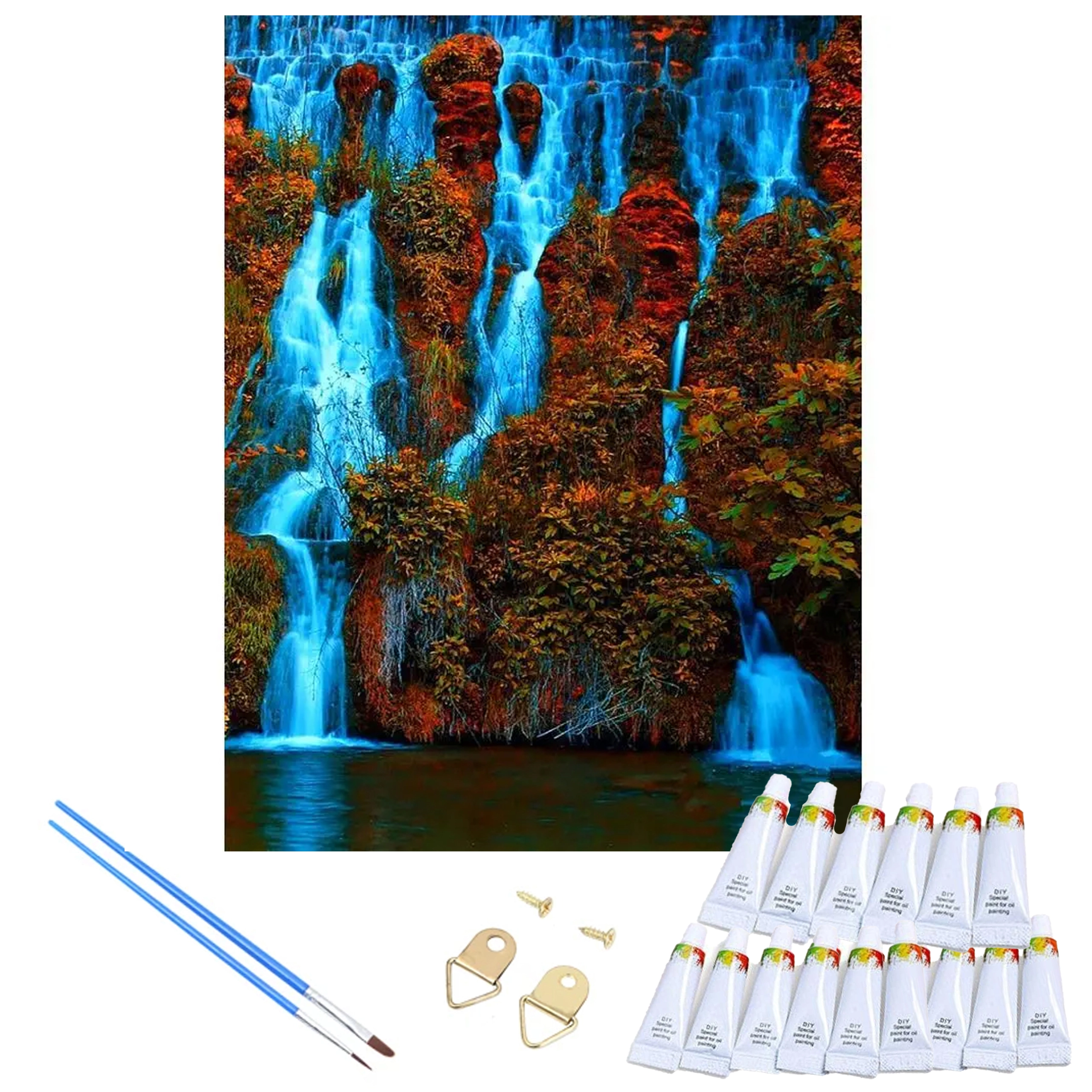 Schilderen op nummer is een geweldige manier om te ontspannen en tegelijk thuis je eigen kunstwerk te maken. Dankzij duidelijke contouren en nummering is het proces eenvoudig, zelfs voor beginners – koppel de kleuren aan de afzonderlijke vakjes en stap voor stap ontstaat er een levendige watervalscène.