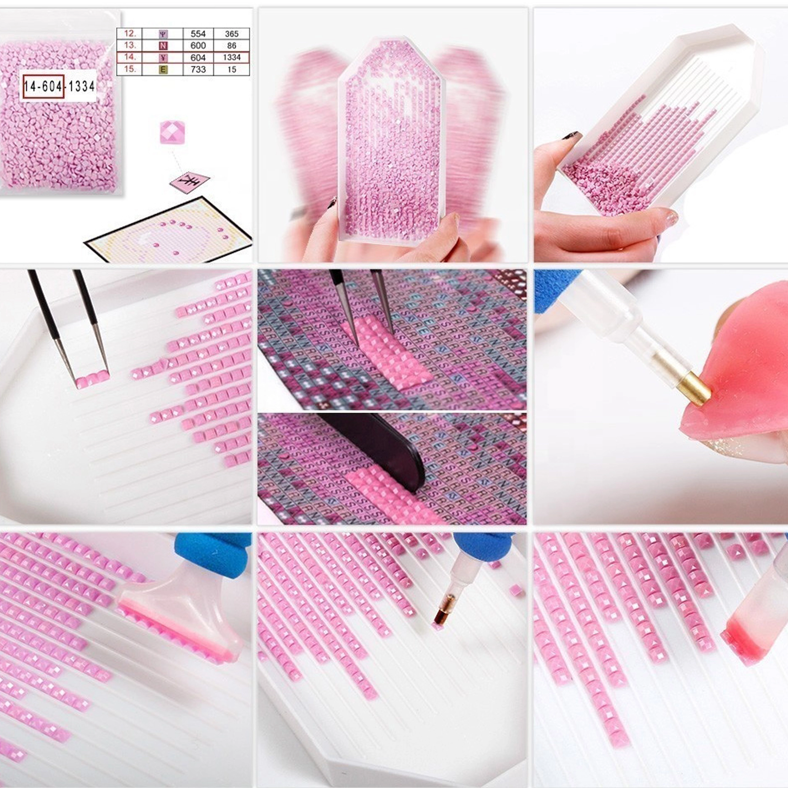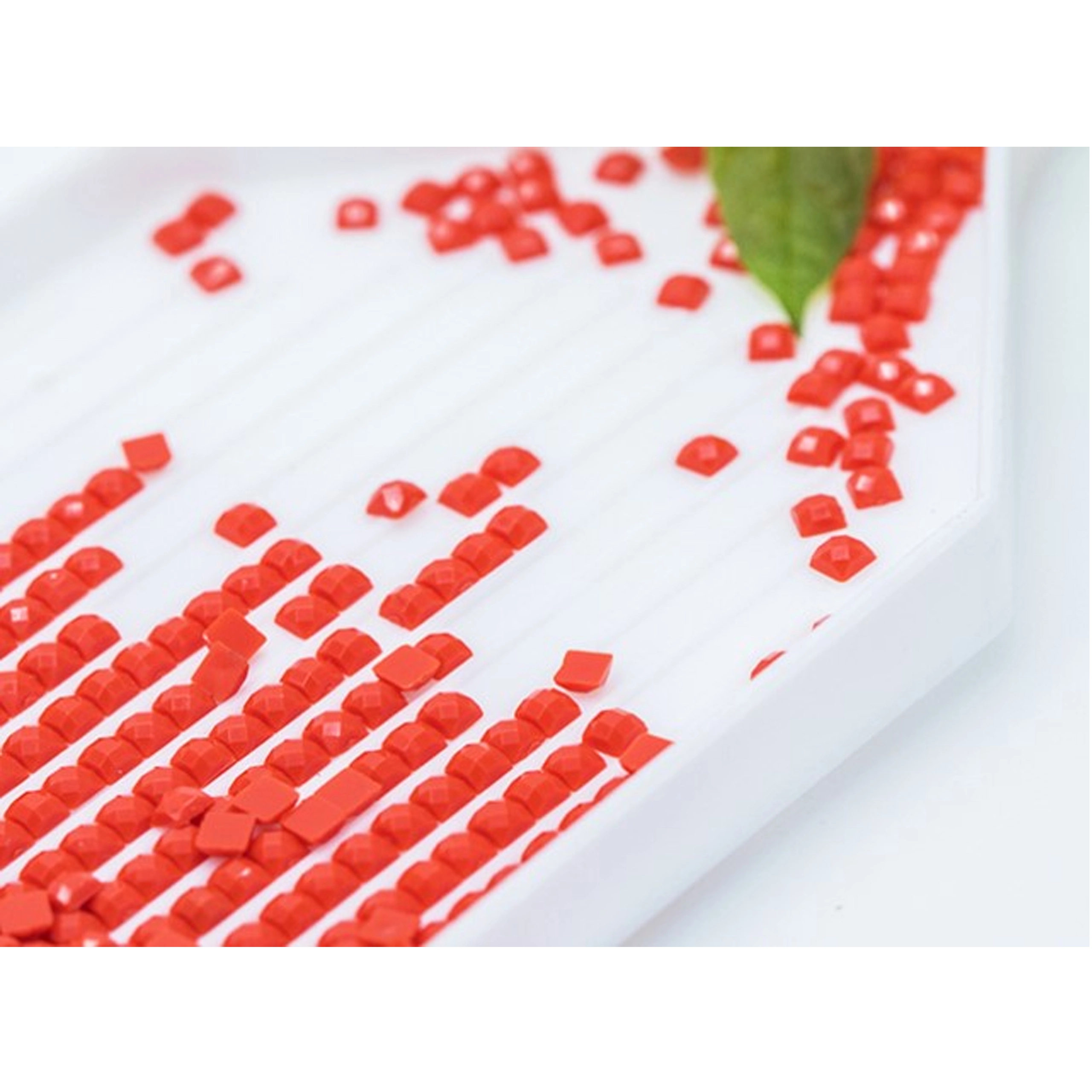 Het geribbelde bakje rangschikt de steentjes in rijen voor snel oppakken en schoon werken. Sorteren is intuïtief en overzichtelijk.
