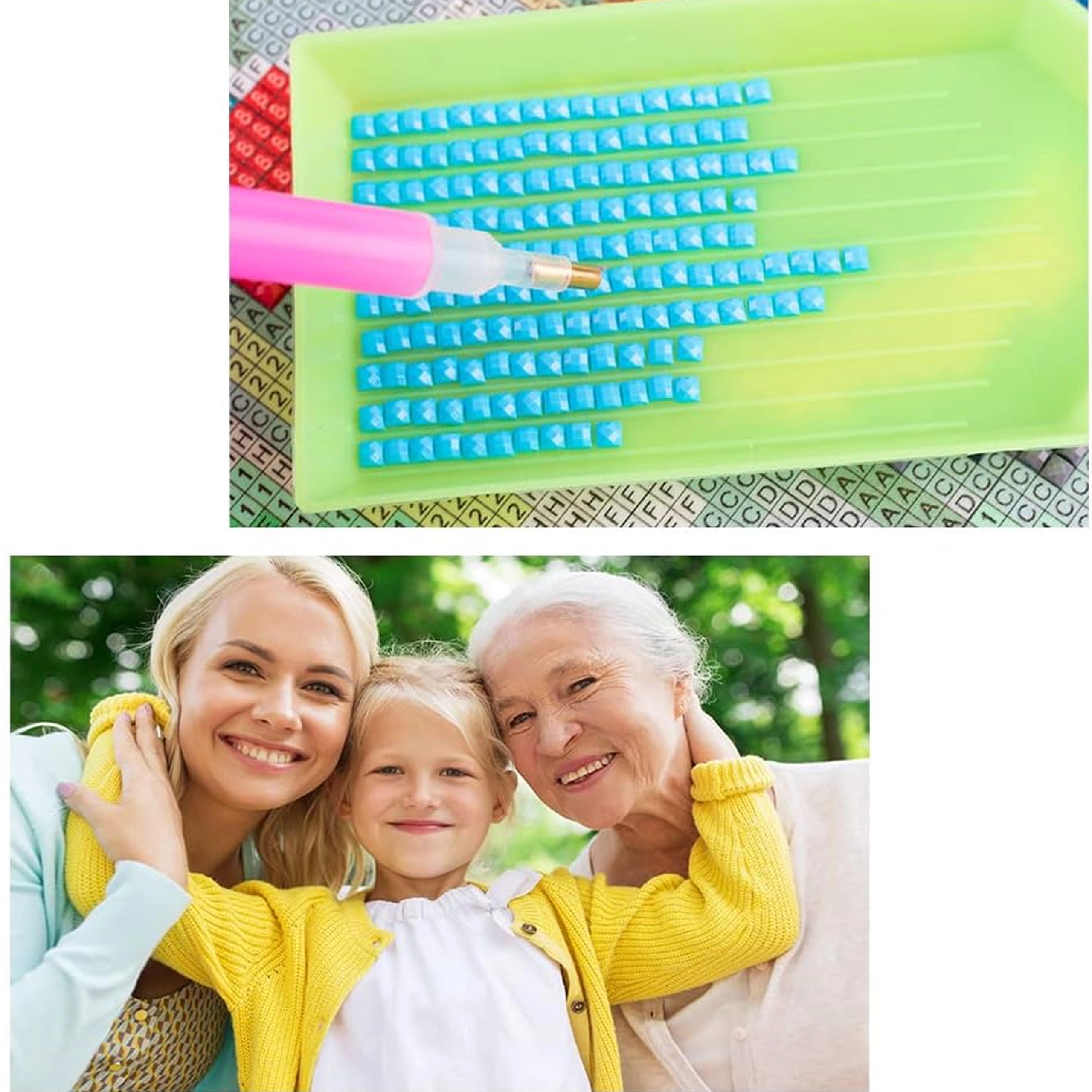 De pen met metalen punt en was maakt het makkelijk om steentjes op te pakken en exact op de gemarkeerde plekken te plaatsen. Ideaal voor kinderen en beginners.