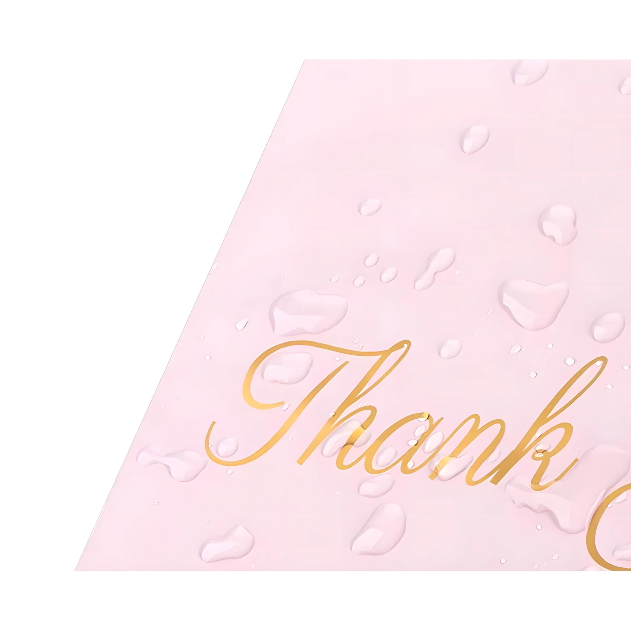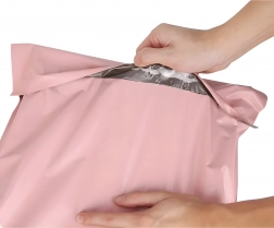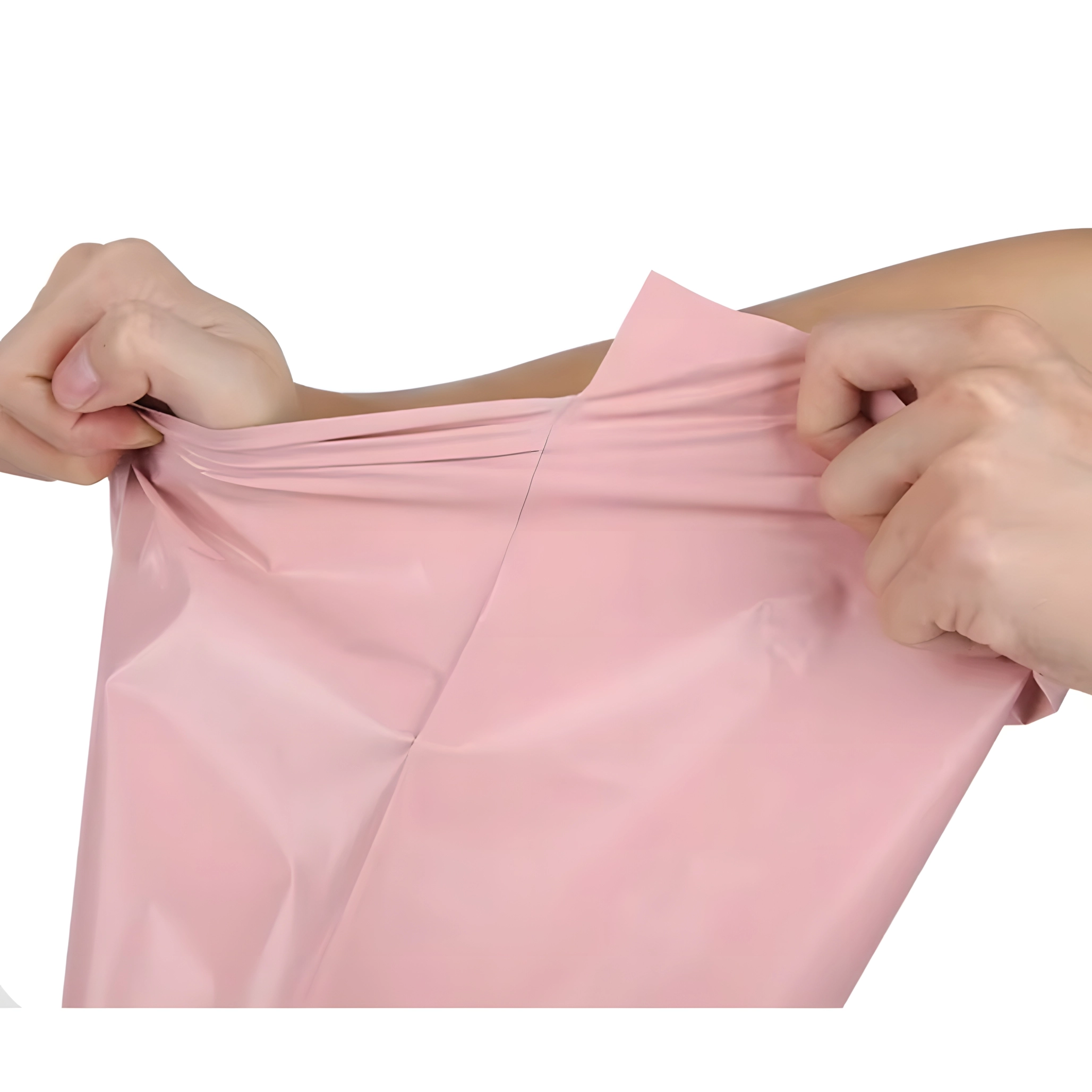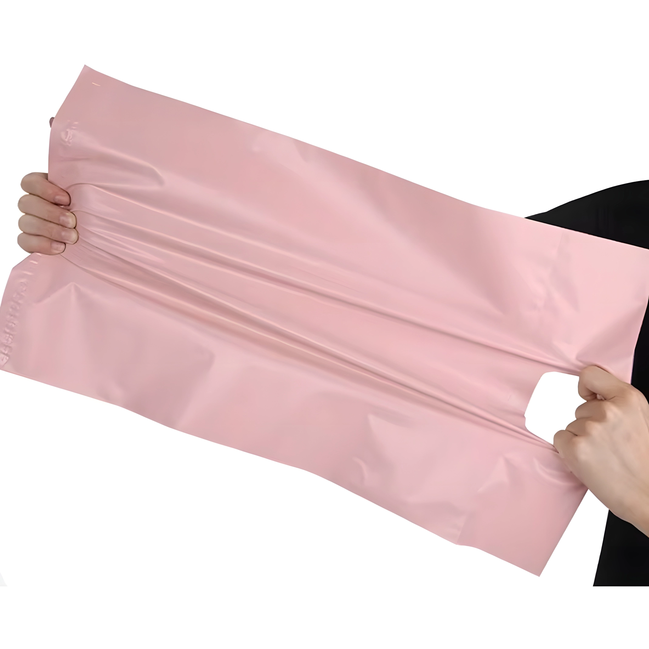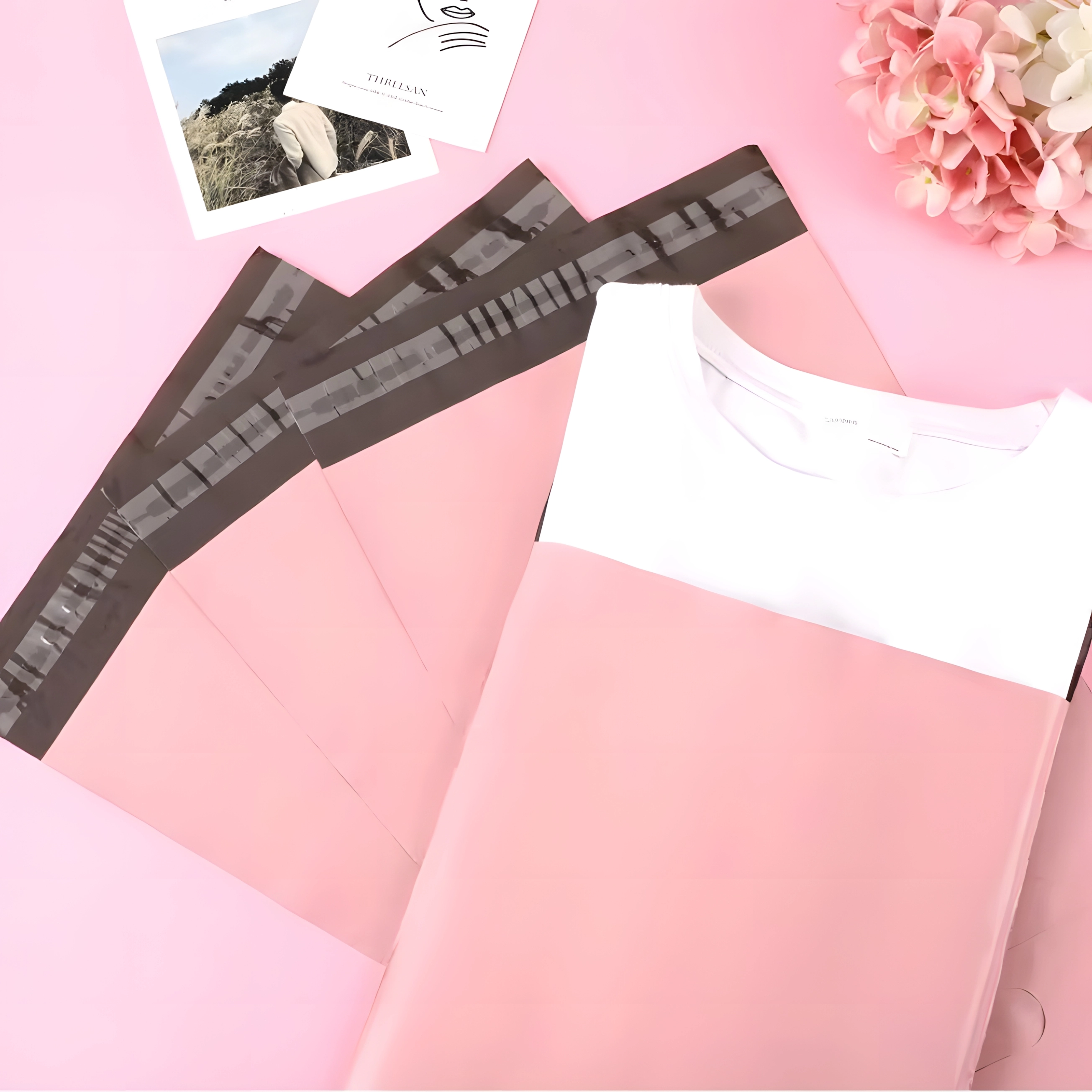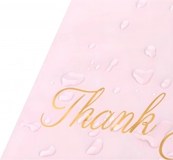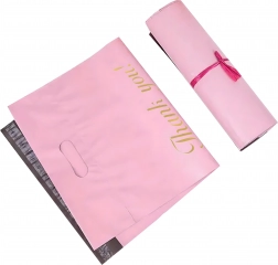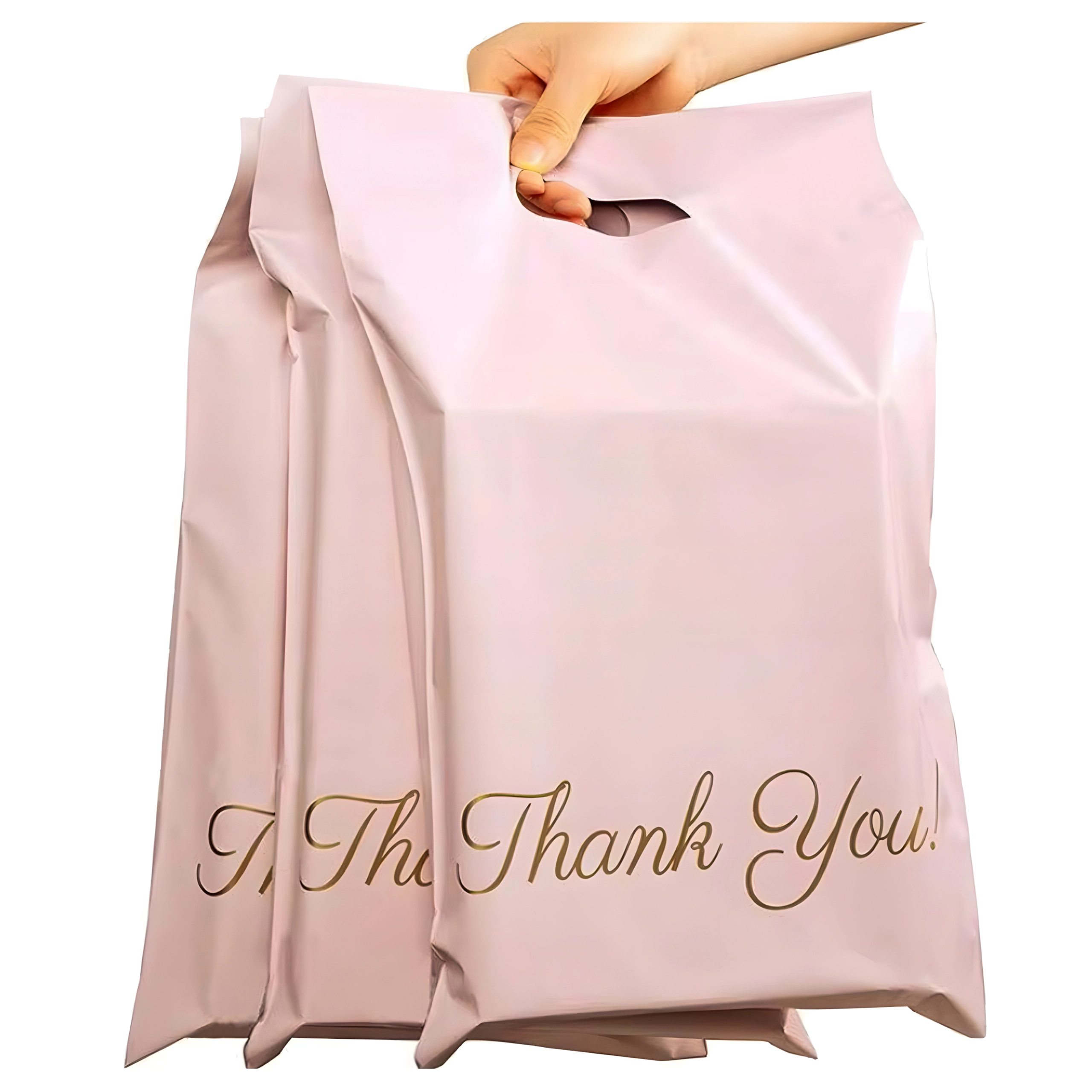 Praktische roze polyzakken met gestanste handgreep voor makkelijk dragen zorgen voor veilige, waterdichte en snelle verpakking van zendingen. Zelfklevende strip voor betrouwbare sluiting, scheurweerstand en een elegante tekst “Thank you!” voor een stijlvolle presentatie van het pakket.