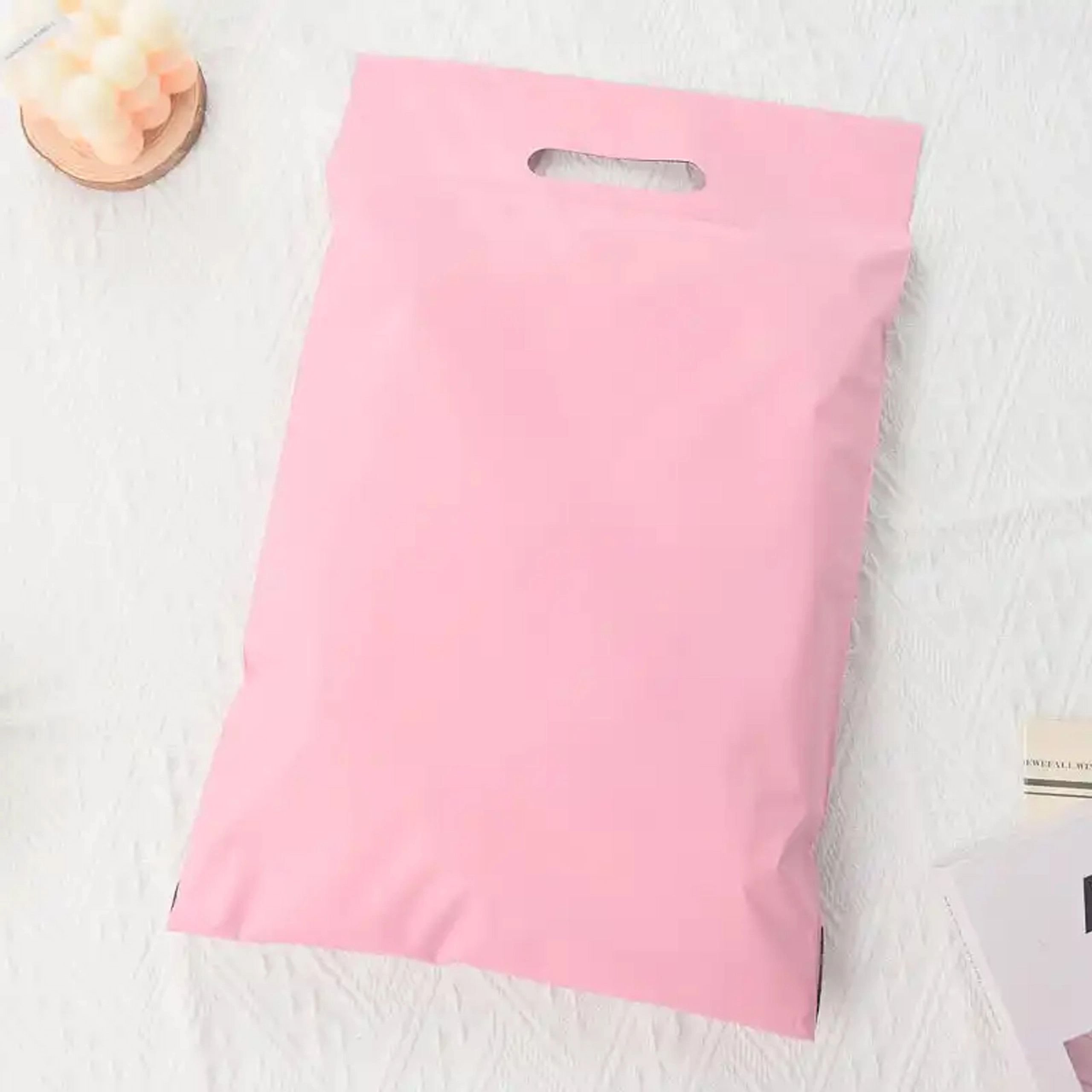 Deze poly mailers met uitsparingshandgreep combineren draagcomfort met bescherming van de zending. De roze buitenlaag oogt stijlvol, de donkere binnenvoering verhoogt de ondoorzichtigheid en discretie. De zelfklevende strip maakt snel en veilig sluiten mogelijk zonder extra tape.