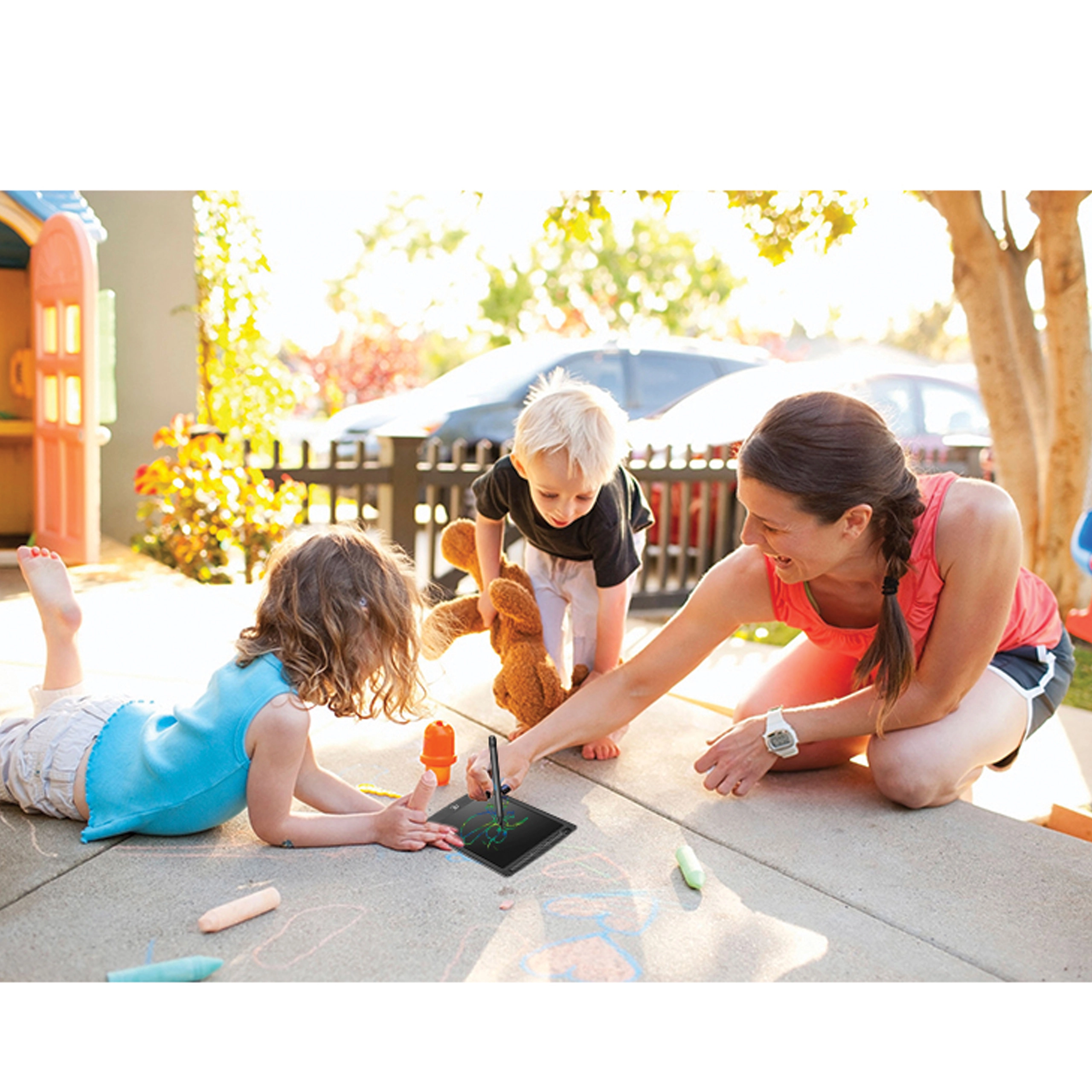 Dankzij het ultralichte en slanke ontwerp past de tablet in rugzak en handtas. De stylus heeft een veilige plek in de bovenste houder, zodat hij niet kwijt raakt. Perfect voor huiswerk, schrijftraining, tekenen, lijstjes en boodschappen – altijd en overal zonder papier en rommel.