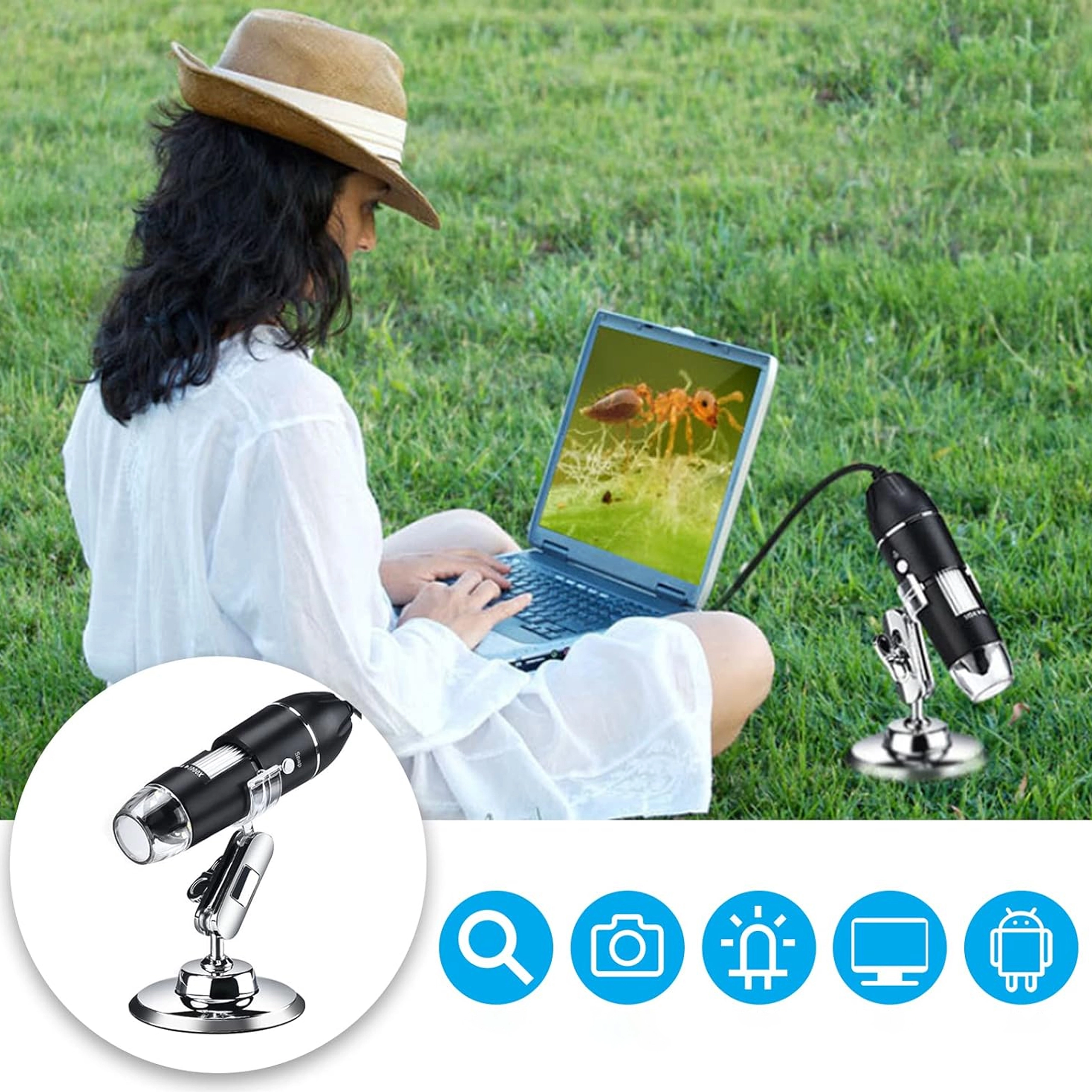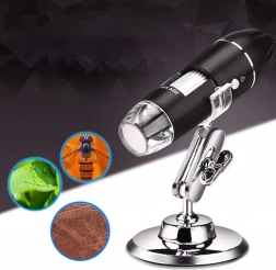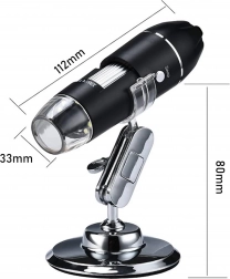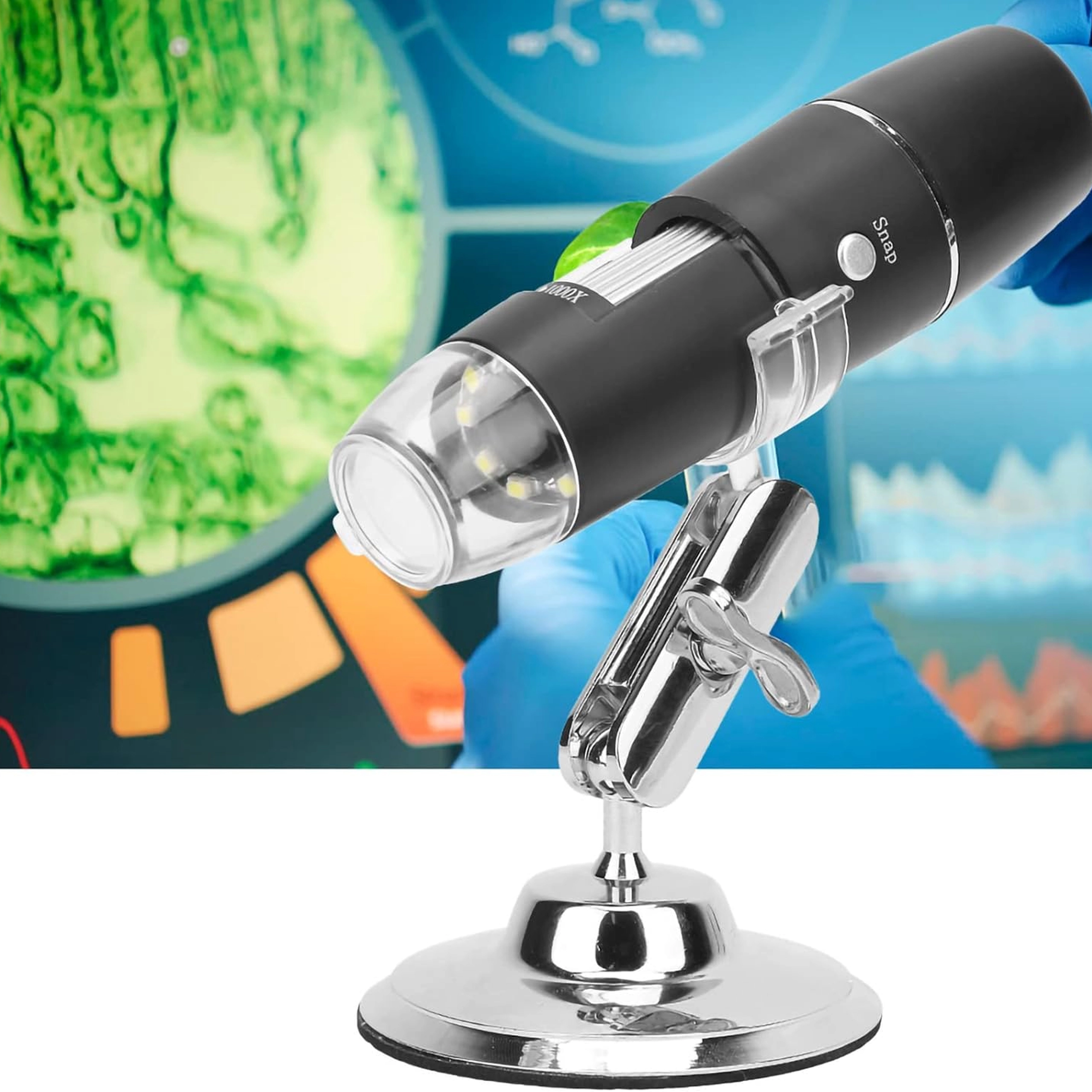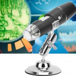 Compacte digitale USB-microscoop met 2 MP camera biedt vergroting tot 1600×, 8 geïntegreerde LED’s met traploze regeling en een stabiel metalen statief voor nauwkeurige observatie. Sluit eenvoudig aan op de computer via USB, maakt foto’s en video-opnamen mogelijk en is ideaal voor school, werkplaats en thuis experimenteren.