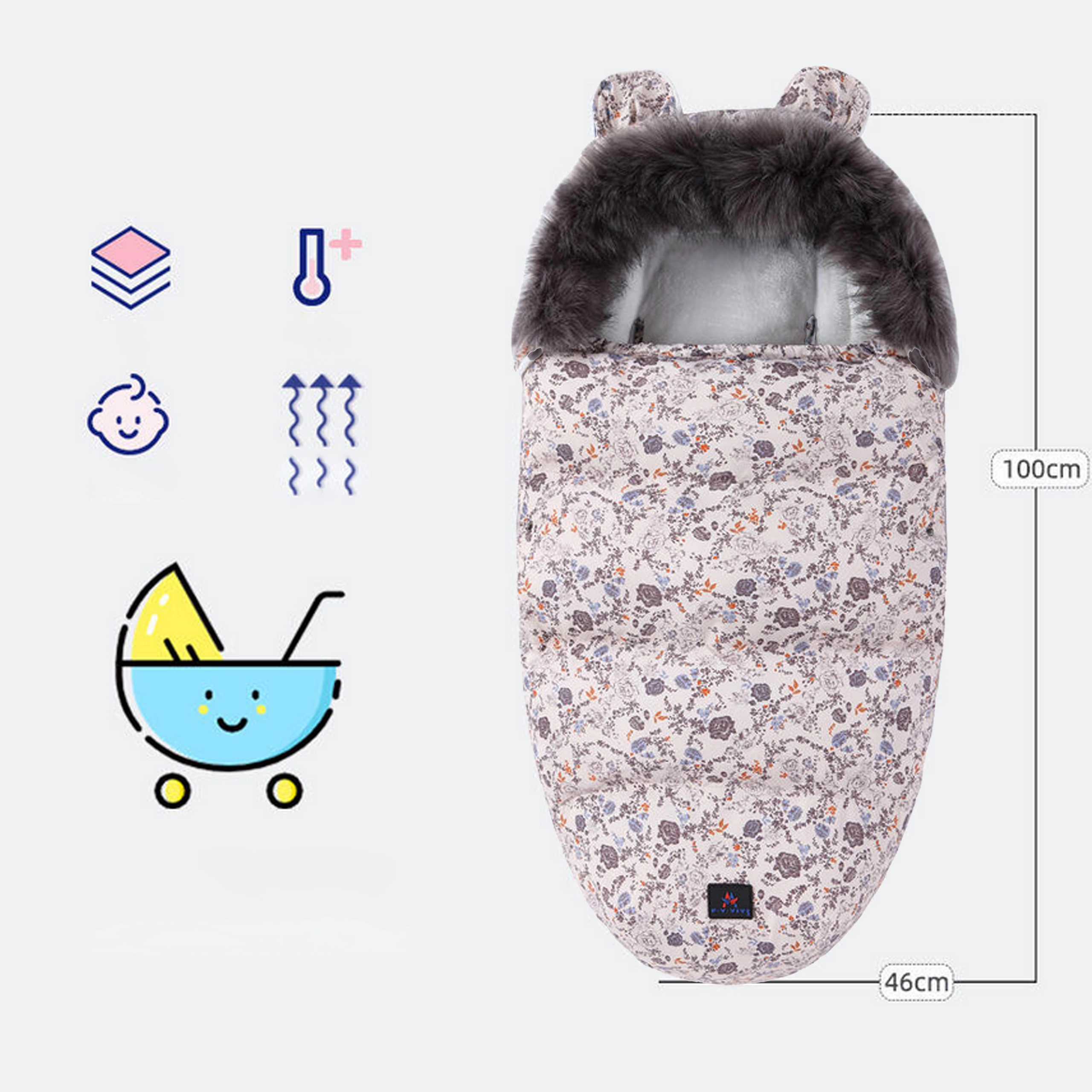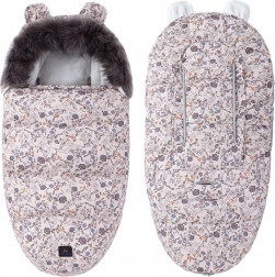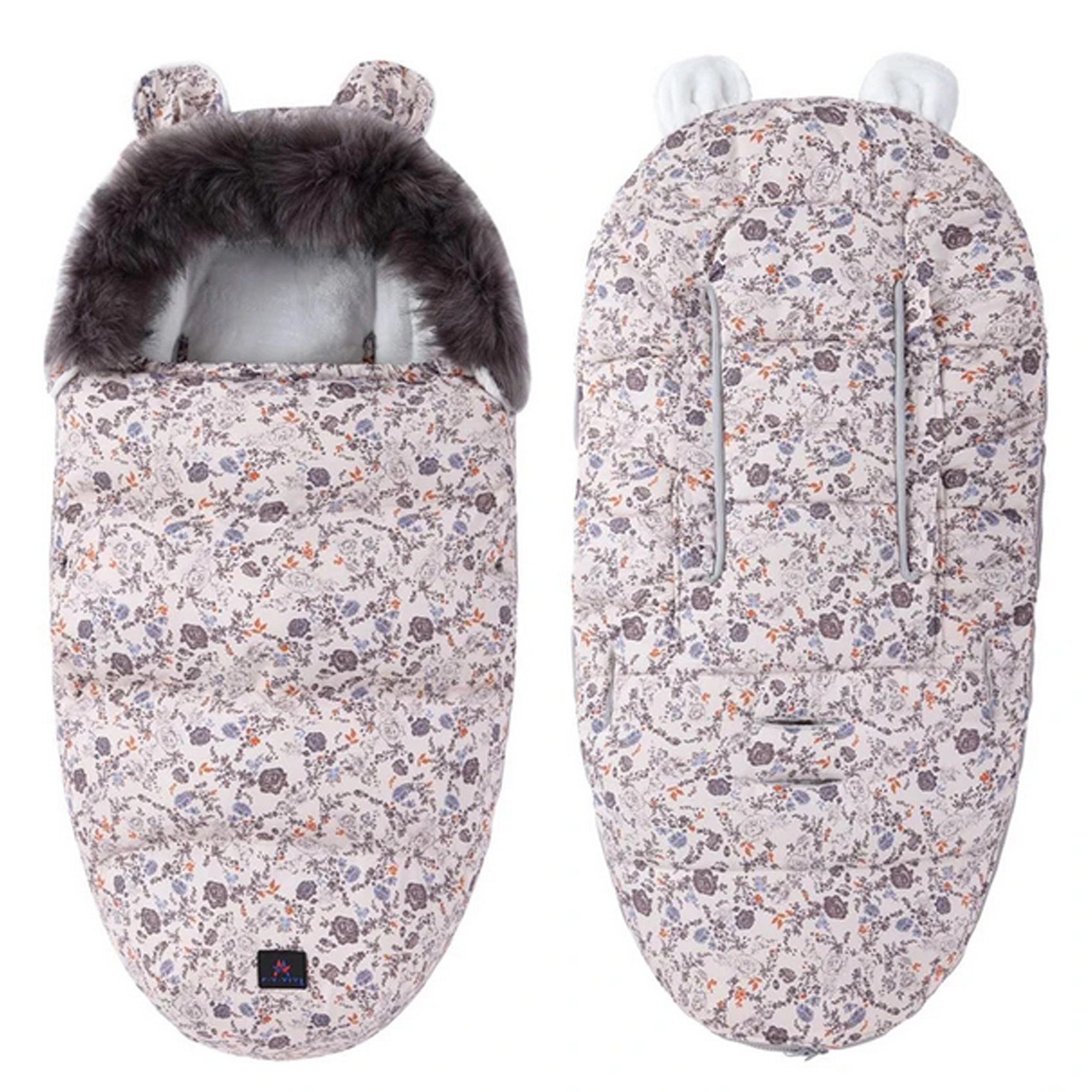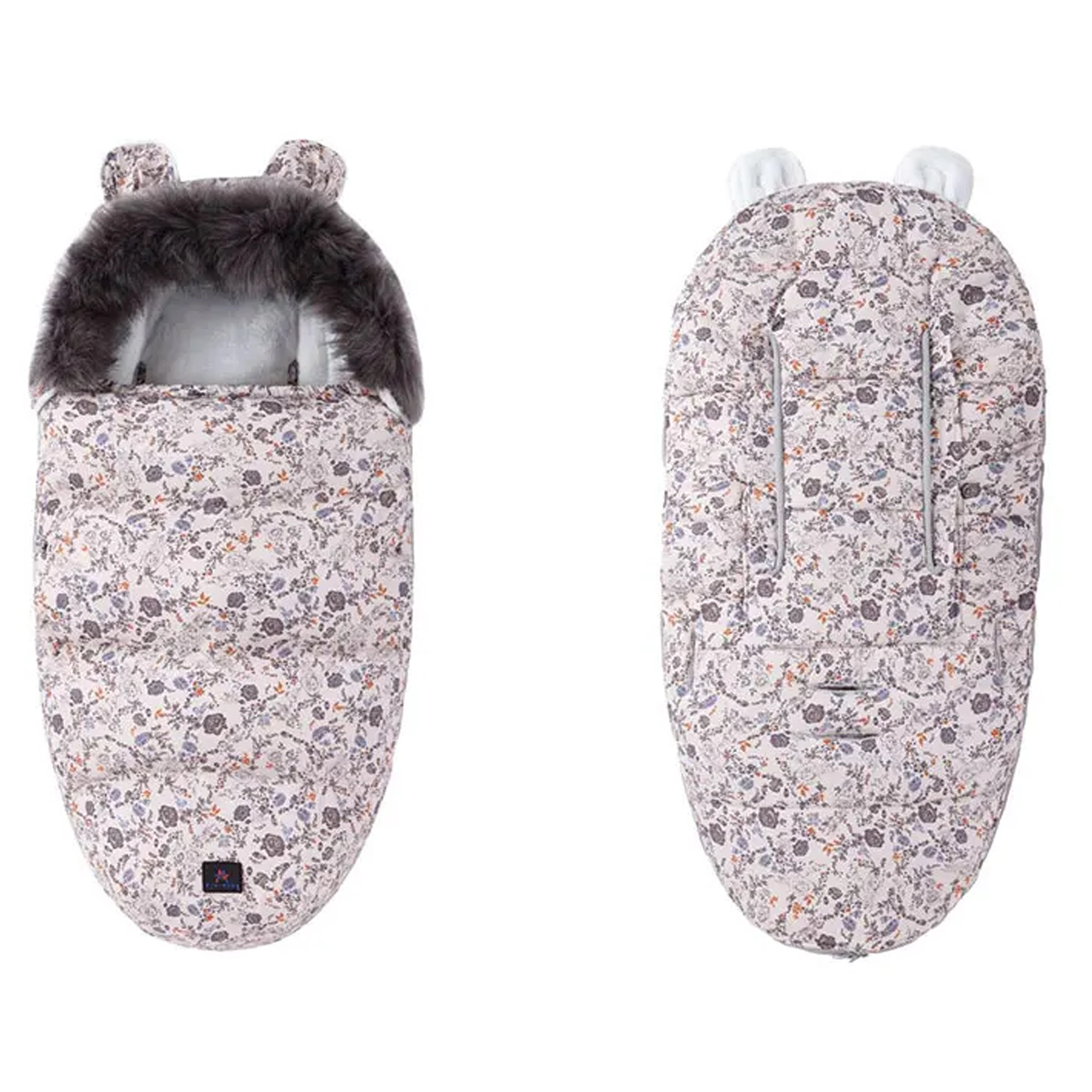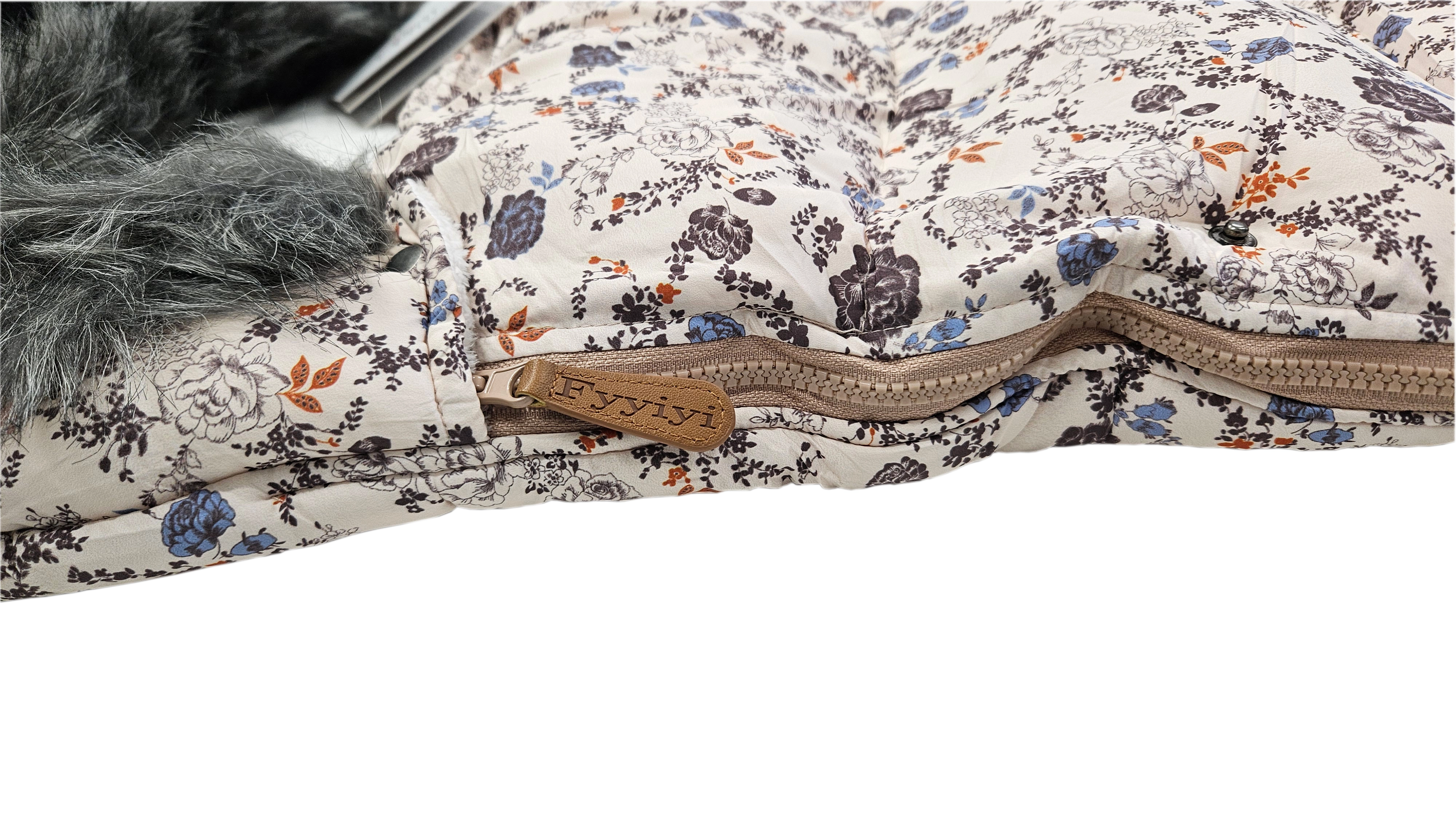 De stijlvolle en functionele FYYIYI-voetenzak in een roze bloemenontwerp is ideaal voor koude dagen. De duurzame buitenstof beschermt tegen sneeuw en wind, terwijl de zachte, warme voering en microfleece binnenin comfort bieden bij elke wandeling. De capuchon met rand van eco-bont beschermt het hoofdje van het kind tegen tocht.