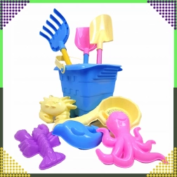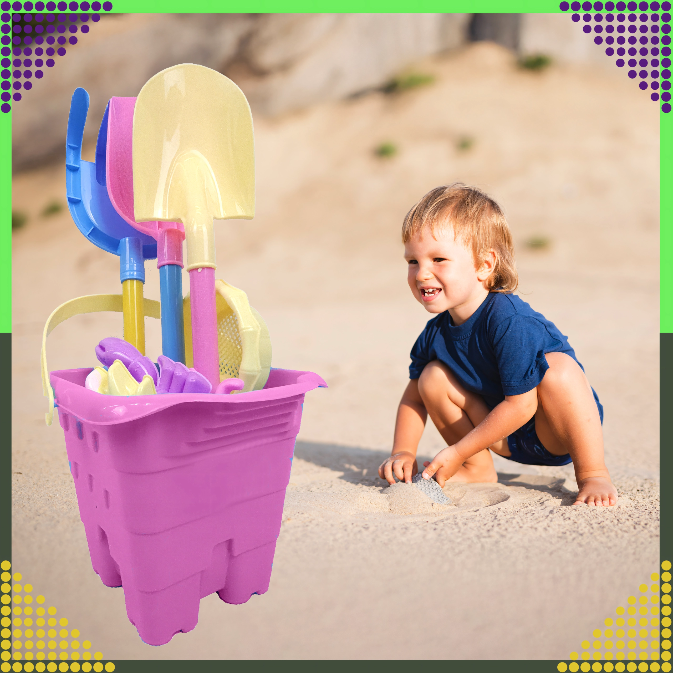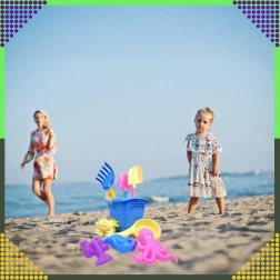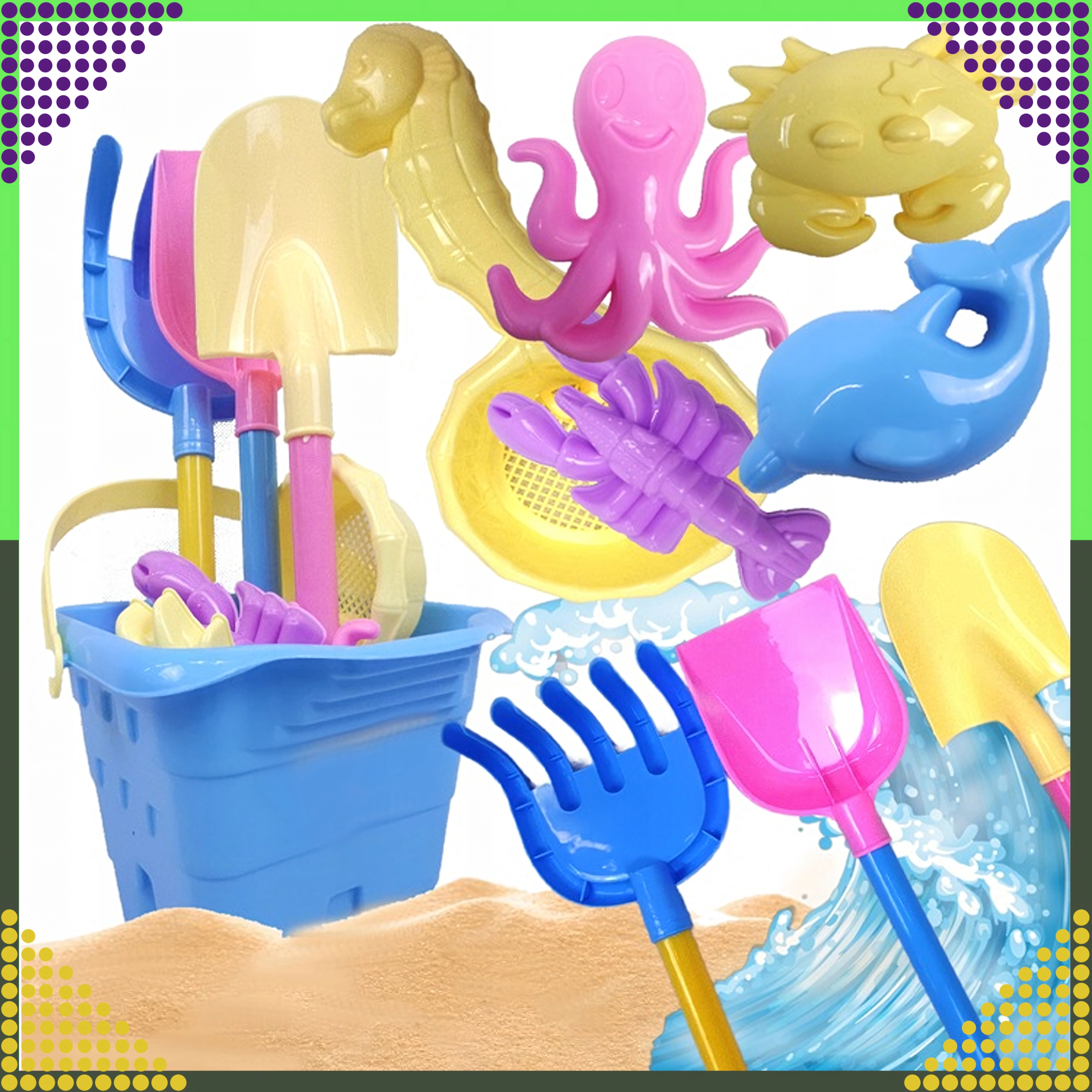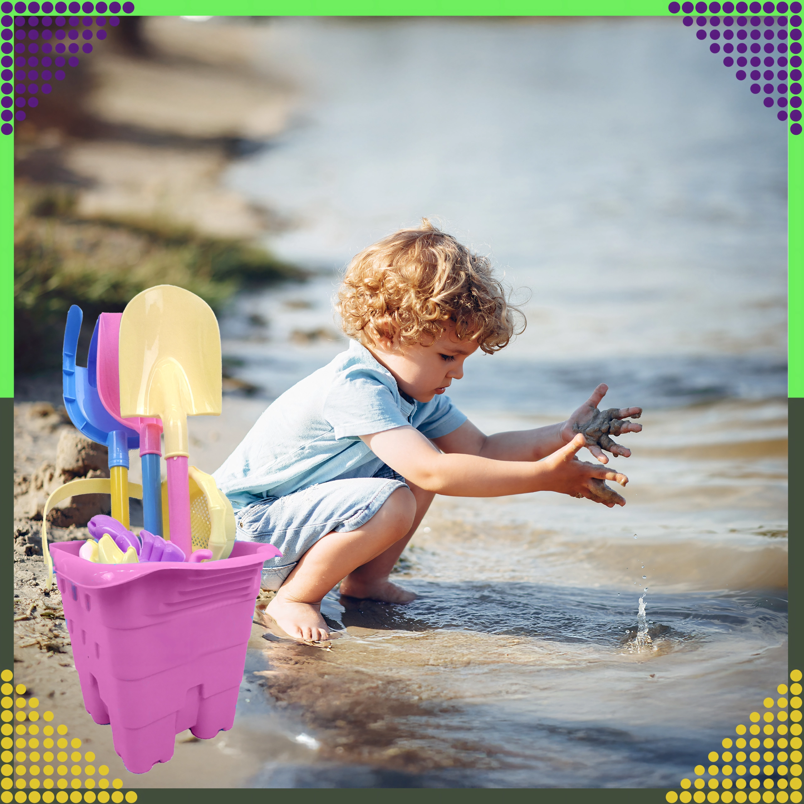 Vrolijke set strandspeelgoed met emmer, vormpjes en schep zorgt voor creatief plezier voor kinderen op het strand, in de tuin en in de zandbak. Stimuleert de fantasie en zintuiglijke ontwikkeling, biedt 9 praktische onderdelen in levendige kleuren en is eenvoudig te reinigen voor dagelijks gebruik.