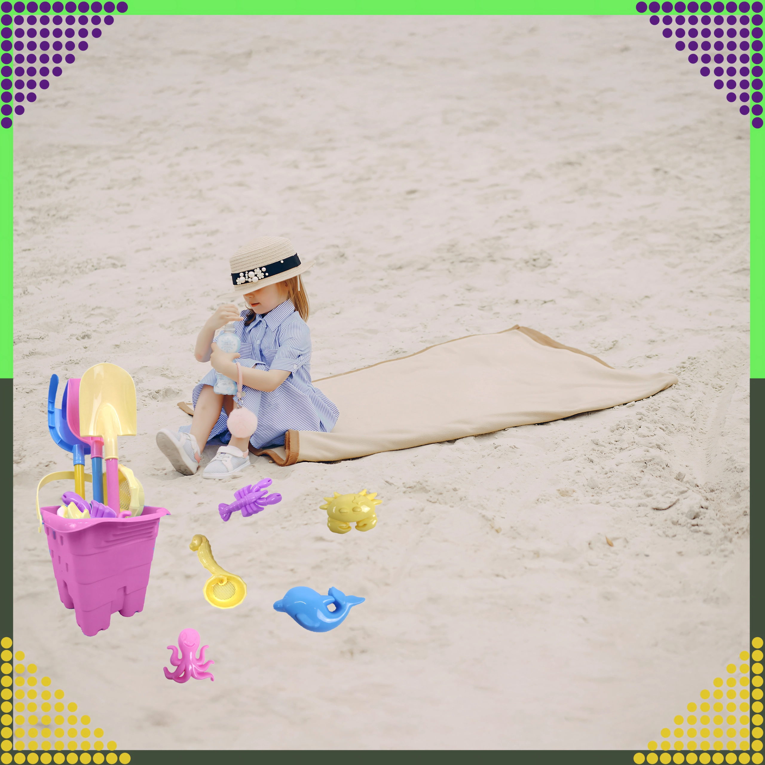 - 9-delige set – alles wat kinderen nodig hebben voor creatieve zandconstructies.