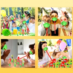 Maskers met elastische bandjes zitten comfortabel bij kinderen en volwassenen. De veerkrachtige “tong” maakt het leuk om doelen te raken en te vangen – veilig en met een flinke dosis lachplezier.