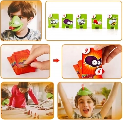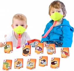 Dankzij verstelbare elastische bandjes zitten de maskers goed vast, de veerkrachtige tong zorgt voor actief en veilig spel en de kleurrijke kaarten met insecten stimuleren getalbegrip, aandacht en oog-handcoördinatie. Perfect voor familie-avonden, kinderfeestjes en vriendschappelijke duels.