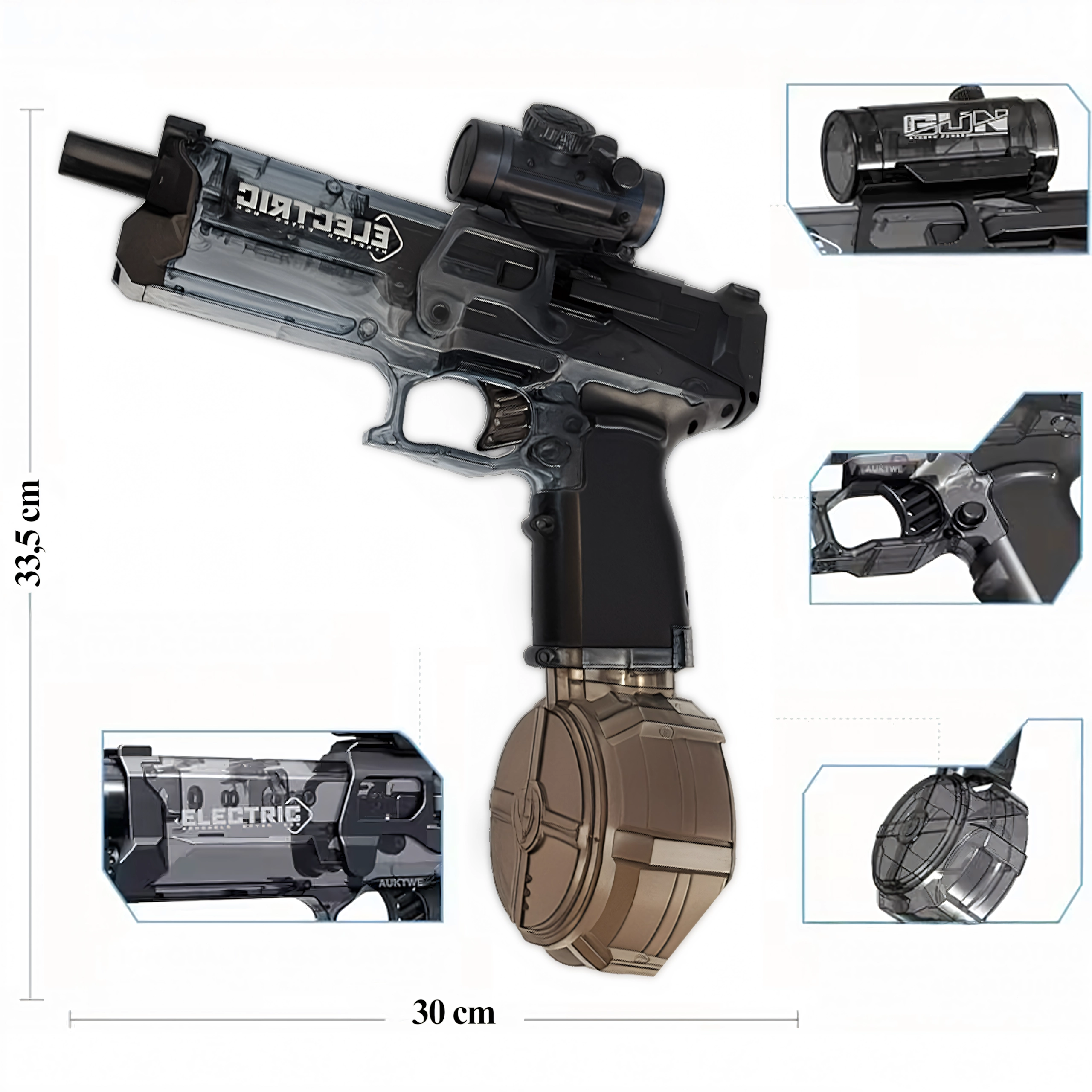 Dit krachtige elektrische waterpistool zorgt voor dynamisch en comfortabel speelplezier voor zowel kinderen als volwassenen. Dankzij de automatische trekker schiet het een continue waterstraal zonder pompen, terwijl de ruim bemeten tank minder vaak bijvullen betekent. De via USB oplaadbare batterij biedt tot 35 minuten plezier op één lading.