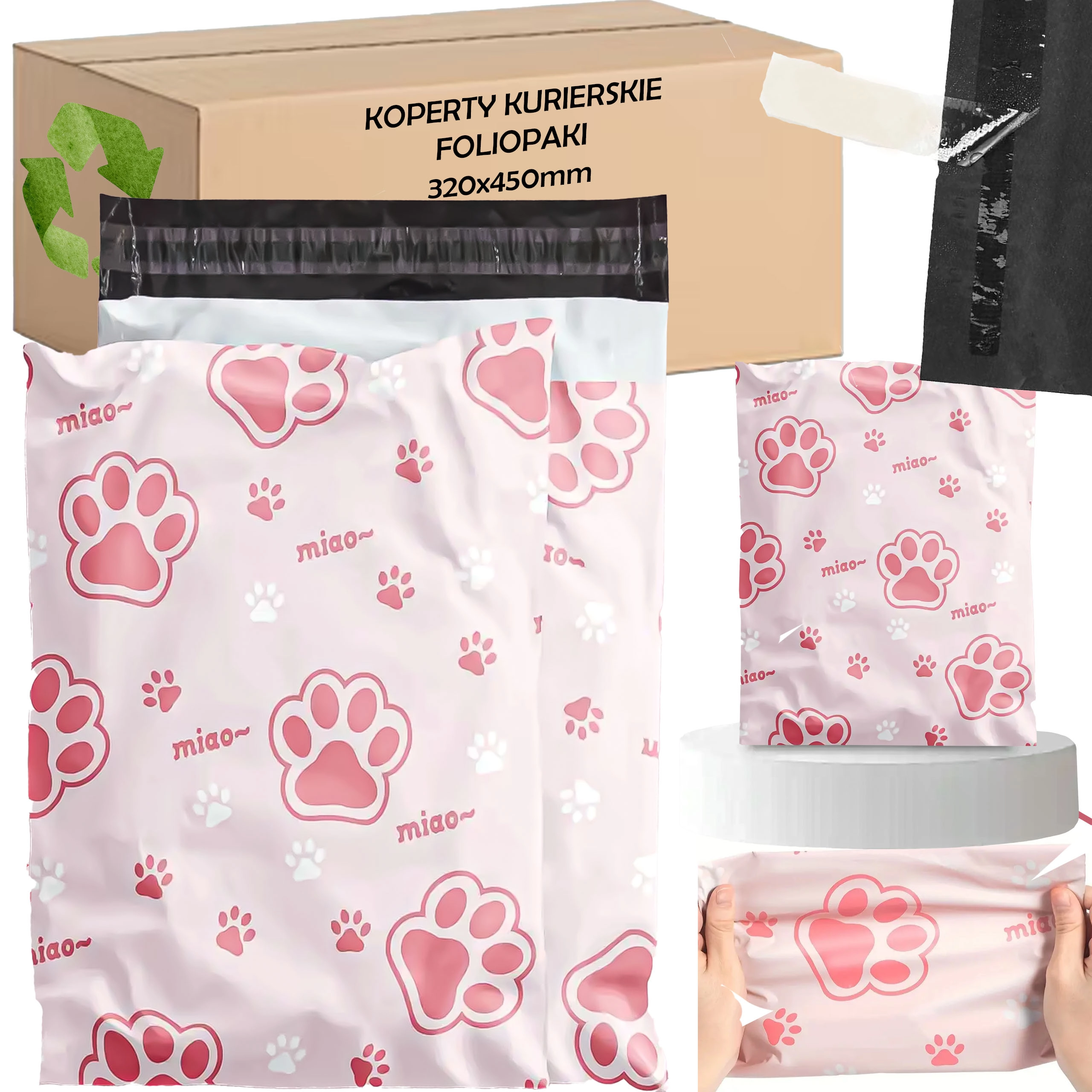 Stijlvolle en stevige poly mailers met kattenpootjes maken het verpakken van bestellingen eenvoudiger. Dankzij de zelfklevende strip sluit je de zending binnen seconden, terwijl het sterke en waterafstotende materiaal de inhoud tijdens transport beschermt. De afmeting 320 × 450 mm is geschikt voor textiel, accessoires, dozen in kleiner formaat en andere artikelen.