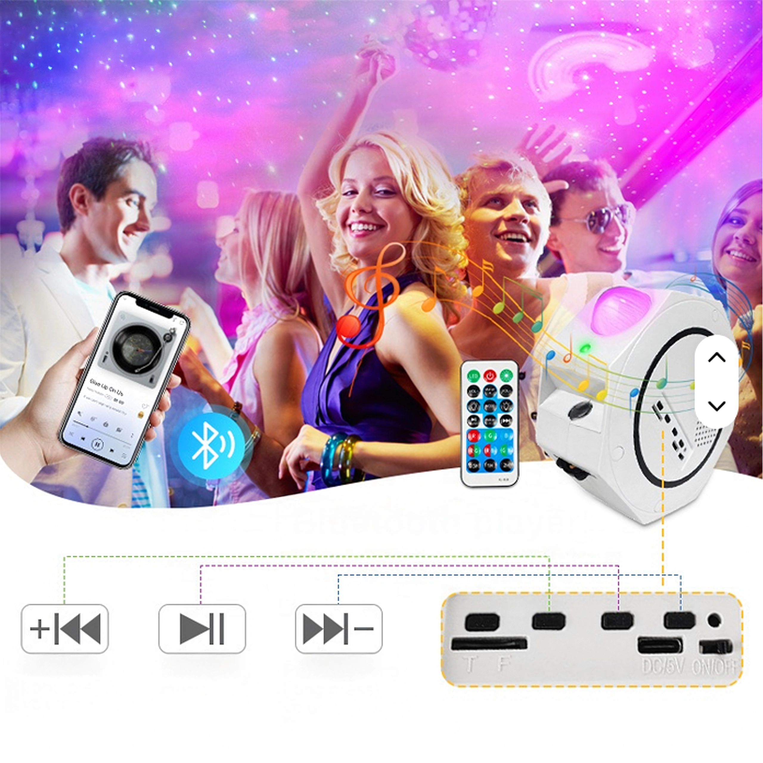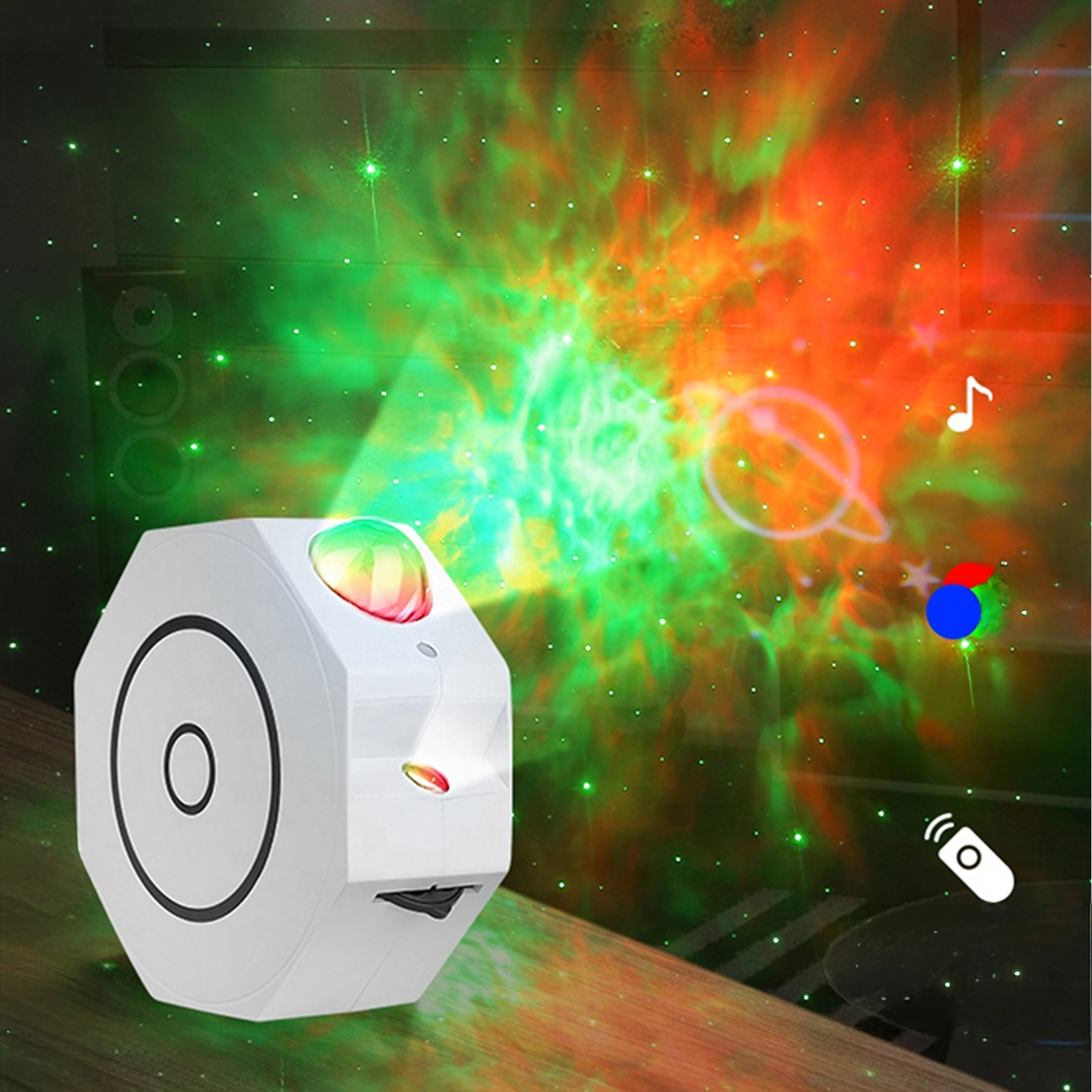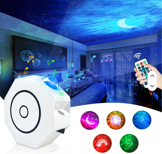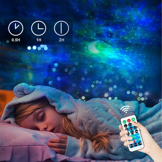 De projector biedt 5 grafische patronen en tot 6 kleurmodi, zodat je precies die hemel kunt creëren die je wilt – van een rustige nachtelijke ruimte tot een pulserende lichtshow. Dankzij de afstandsbediening schakel je gemakkelijk tussen kleuren, stijlen en helderheid zonder op te staan.