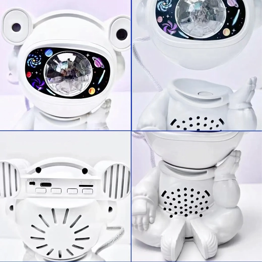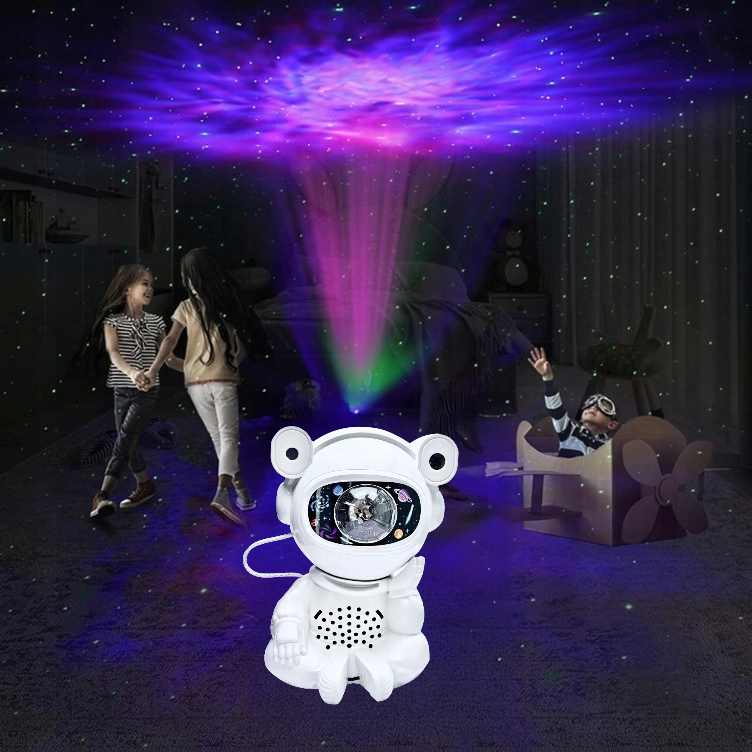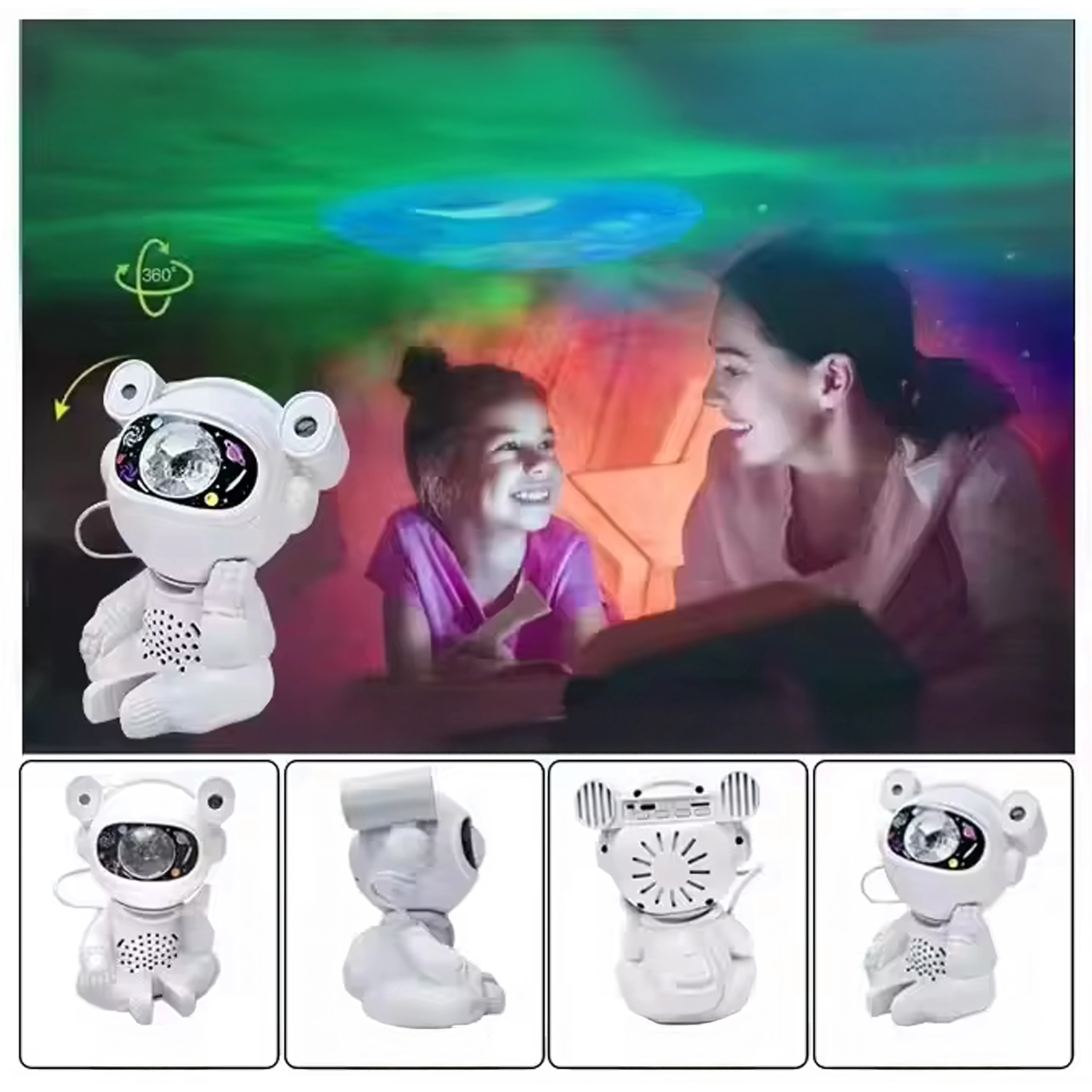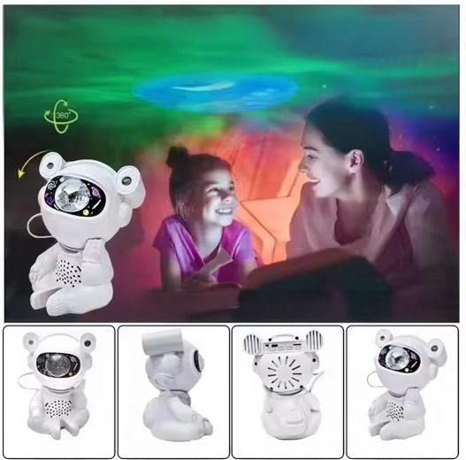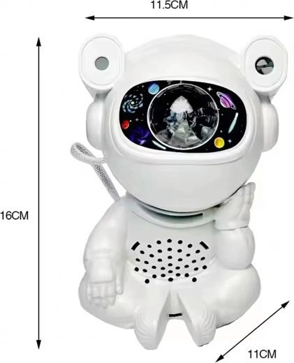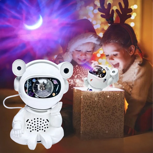 Ontdek rustig in slaap vallen met een kalmerende sterrenprojectie dankzij de astronautlamp met verstelbare kop. De projectie tovert op plafond en muren een indrukwekkende galaxie van sterren en nevels, stimuleert de verbeelding van kinderen en zorgt voor een fijne, ontspannen sfeer.