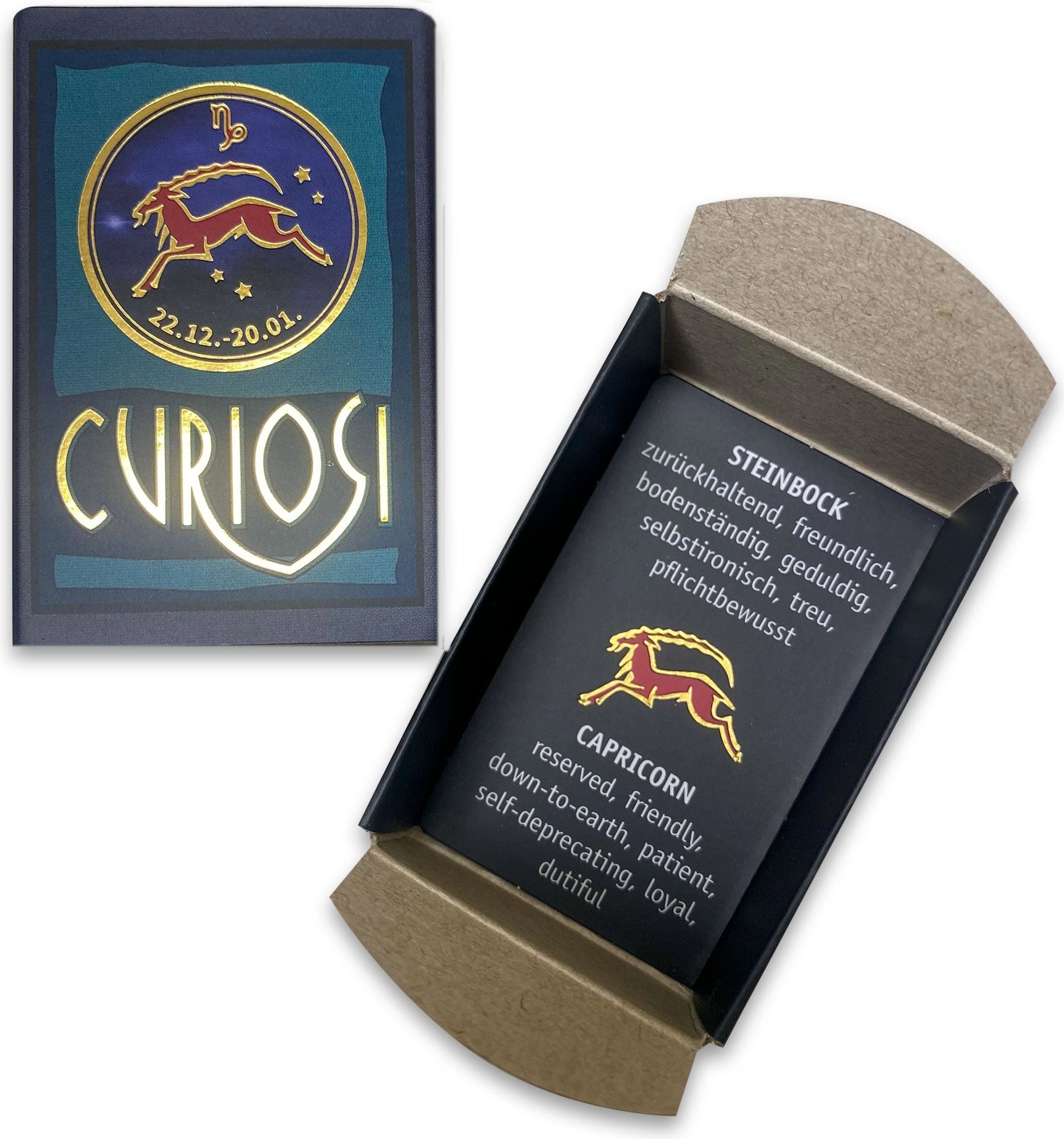 Ontdek de mini-puzzel met het teken Steenbok van het merk Curiosi. Dankzij de ongebruikelijk gevormde stukjes, het elegante gouden effect en de korte legtijd is hij ideaal voor een korte ontspanning. Het voltooide motief heeft een diameter van ongeveer 9 cm en dient perfect als een stijlvolle decoratie of verzamelobject.