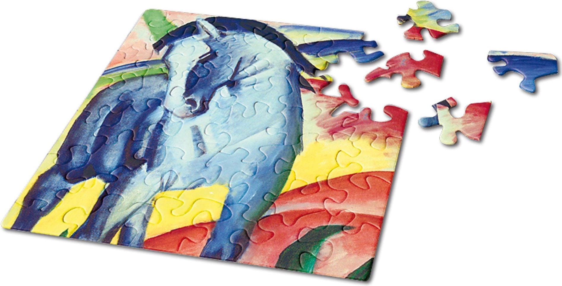Geniet van een unieke puzzelervaring met een compacte maar opvallende vierkante puzzel. Het kunstzinnige motief van het blauwe paard trekt meteen de aandacht en wordt na het leggen een prachtige decoratie.