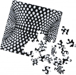 De puzzel Curiosi Shimmer: Illusie III zal iedereen bevallen die van designpuzzels houdt. Het originele motief met optische illusies springt direct in het oog en dankzij de ongewone vormen van de stukjes biedt het ook voor gevorderde puzzelaars veel plezier.
