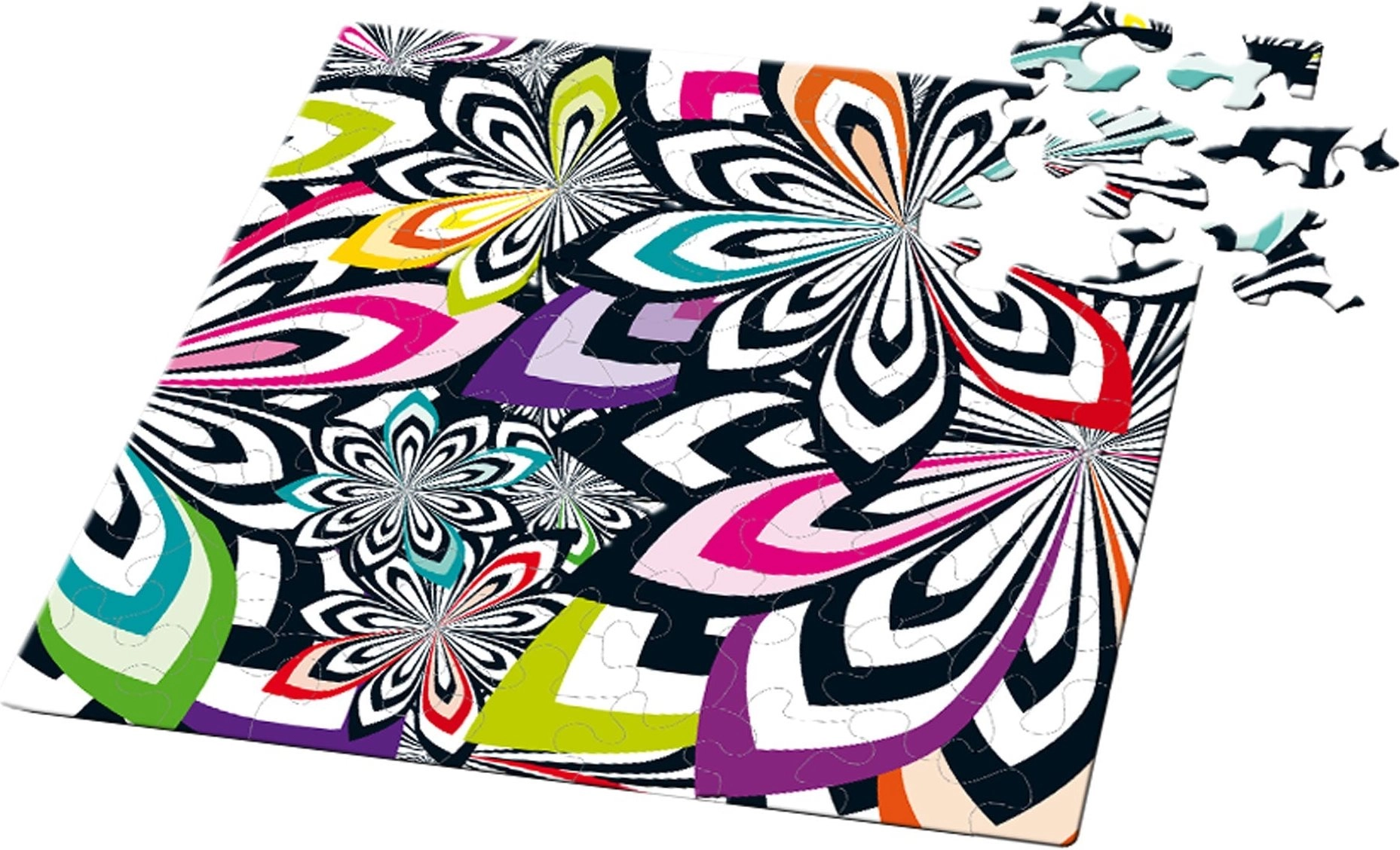 Ontdek het leuke leggen met de vierkante puzzel Curiosi Q Shake in patroon IV. Biedt een origineel design, onconventionele vormen van stukjes voor meer uitdaging en een compact formaat van de voltooide afbeelding, die bijna overal past.
