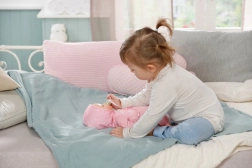 De pop heeft een zacht stoffen lijfje dat ideaal is om te knuffelen en een realistisch hoofdje met fijne gelaatstrekken, wat empathisch spel stimuleert.
