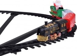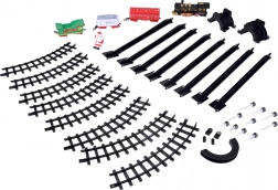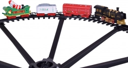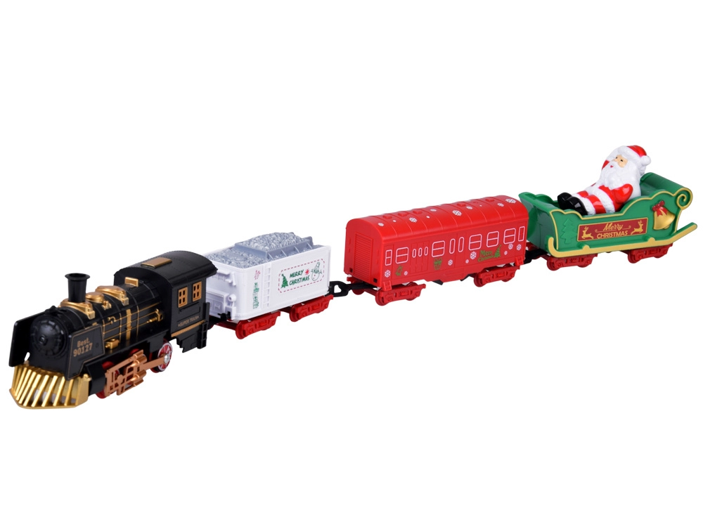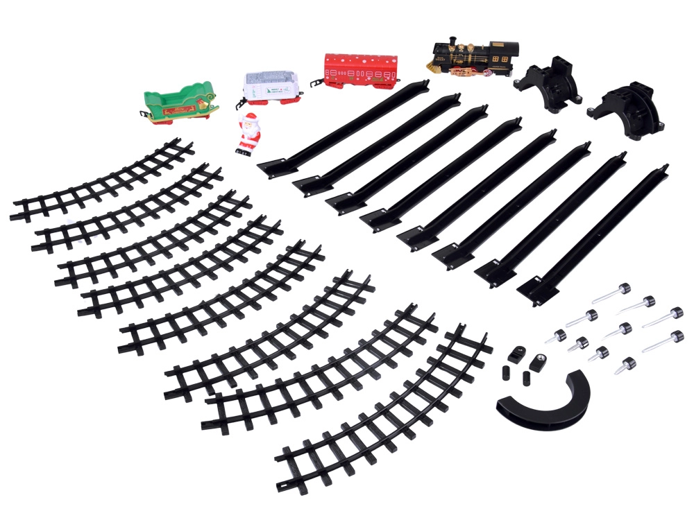 - Locomotief + 3 wagons (witte kolenwagon, rode wagon, groene slee met de Kerstman)