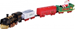 De set bestaat uit een zwarte locomotief en drie verschillende wagons: een witte kolenwagon met de tekst Merry Christmas, een rode wagon met versiering en een groene slee met de Kerstman.