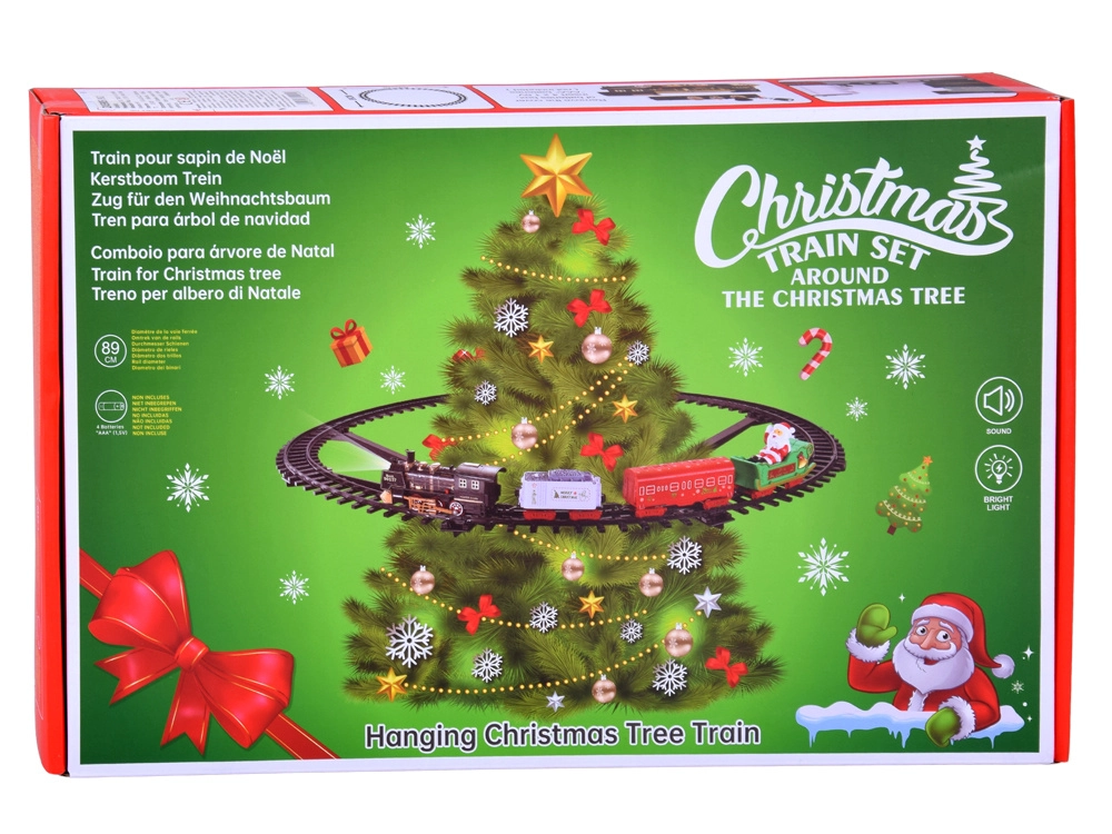 Verlicht de feestdagen met een magische toevoeging: een interactieve kersttrein die rond je kerstboom rijdt. Hij biedt twee rijsnelheden, voorste LED-koplamp, stoomlocomotiefgeluid en een kerstmelodie. De locomotief trekt drie thematische wagons en de set is eenvoudig aan de boom te bevestigen met stevige steunen.