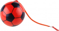 Stimuleer actieve beweging en buitenspelen met deze rubberen bal met voetbalmotief. Het duurzame materiaal garandeert een lange levensduur en uitstekende stuiters, ideaal om tegen te schoppen, te gooien, te rollen en reflexen te trainen. De geïntegreerde beugel maakt het mogelijk een spiraalkoord of lijn te bevestigen, zodat je de bal altijd onder controle hebt.
